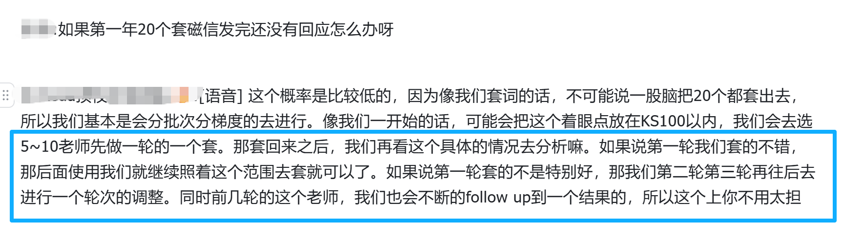 负责做调研的助理会加上10-20家竞争对手的微信,挨个和对方微信聊天+语音聊天,并且把语音录下来,再把语音转文字也一块粘贴到飞书文档里。(如下图蓝圈处)