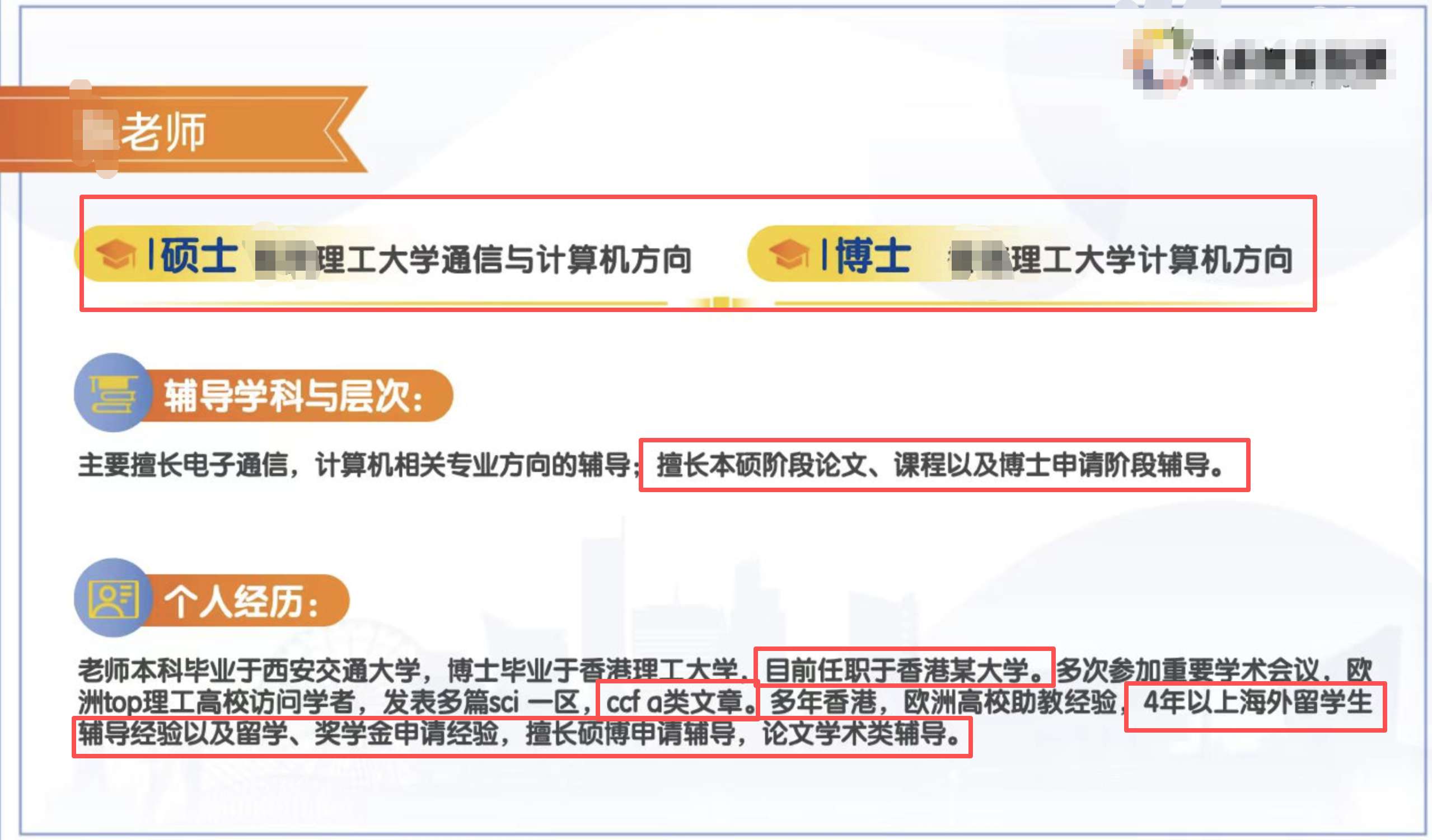 再看下图,此处,我们已经给到竞争对手的销售,告诉对方:我们的本科和硕士分别是什么学校和什么专业。