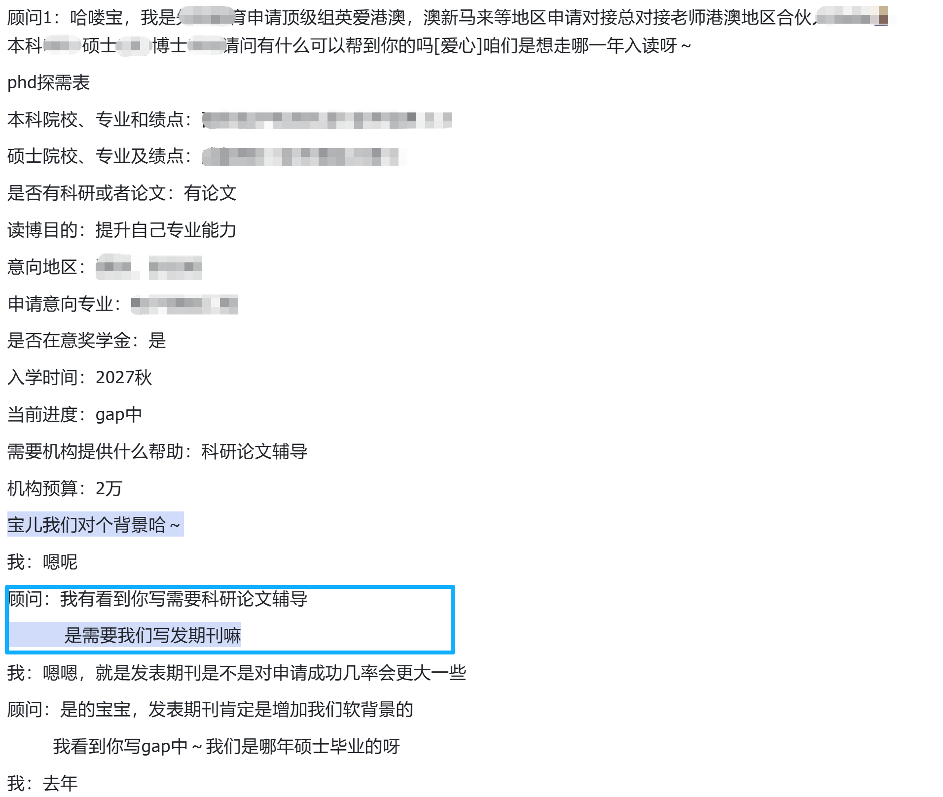之前我们已经在群里分享了“关于博士留学赛道这个红海赛道”调研的细节、官方蓝V号的写作框架、写稿&改稿教程。