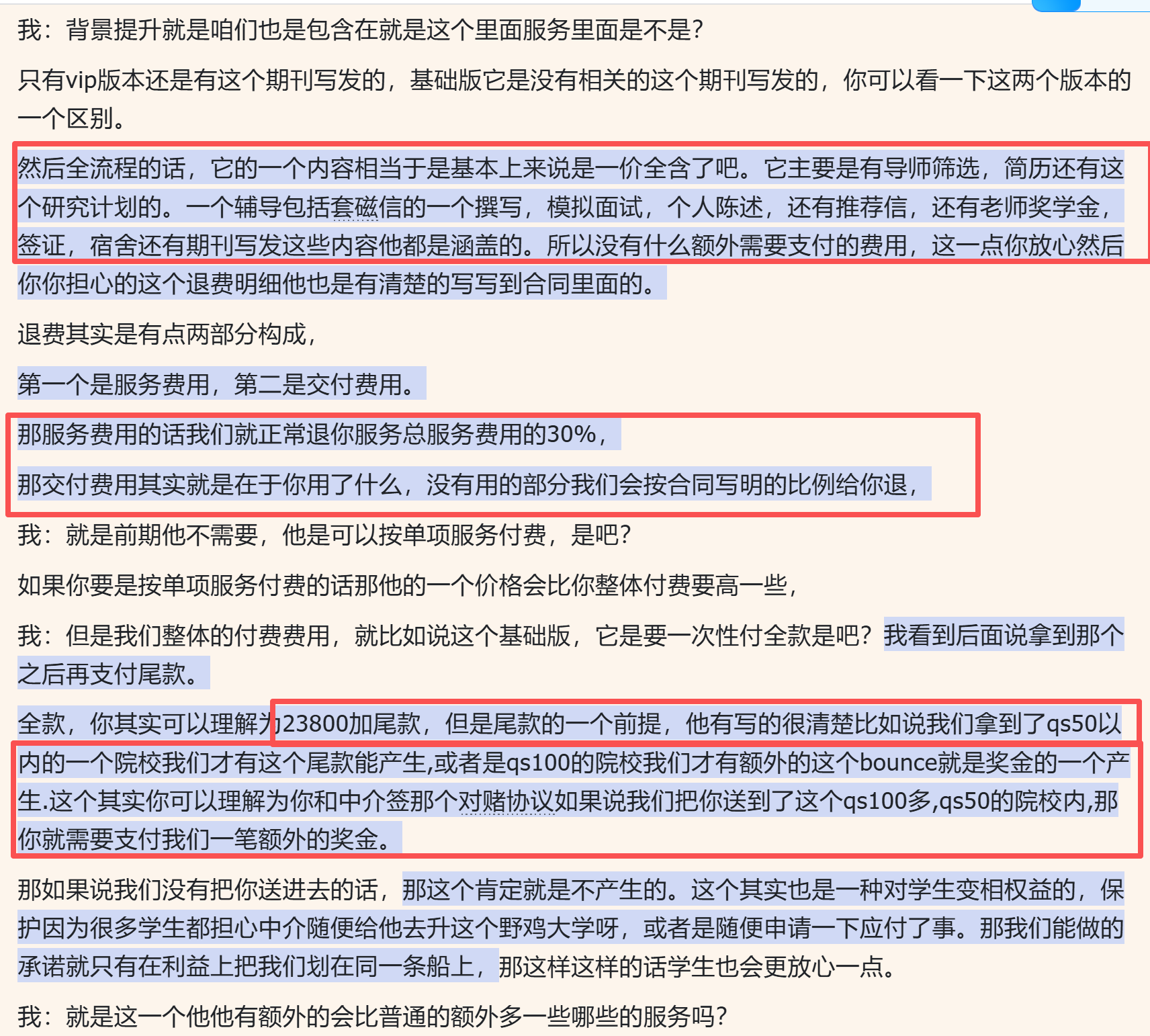 2)把我们自家机构销售老师会对学生说的话、会发出来的产品小册子,也看一遍,把我们【作为申博学生视角】的疑惑,用文字写出来。