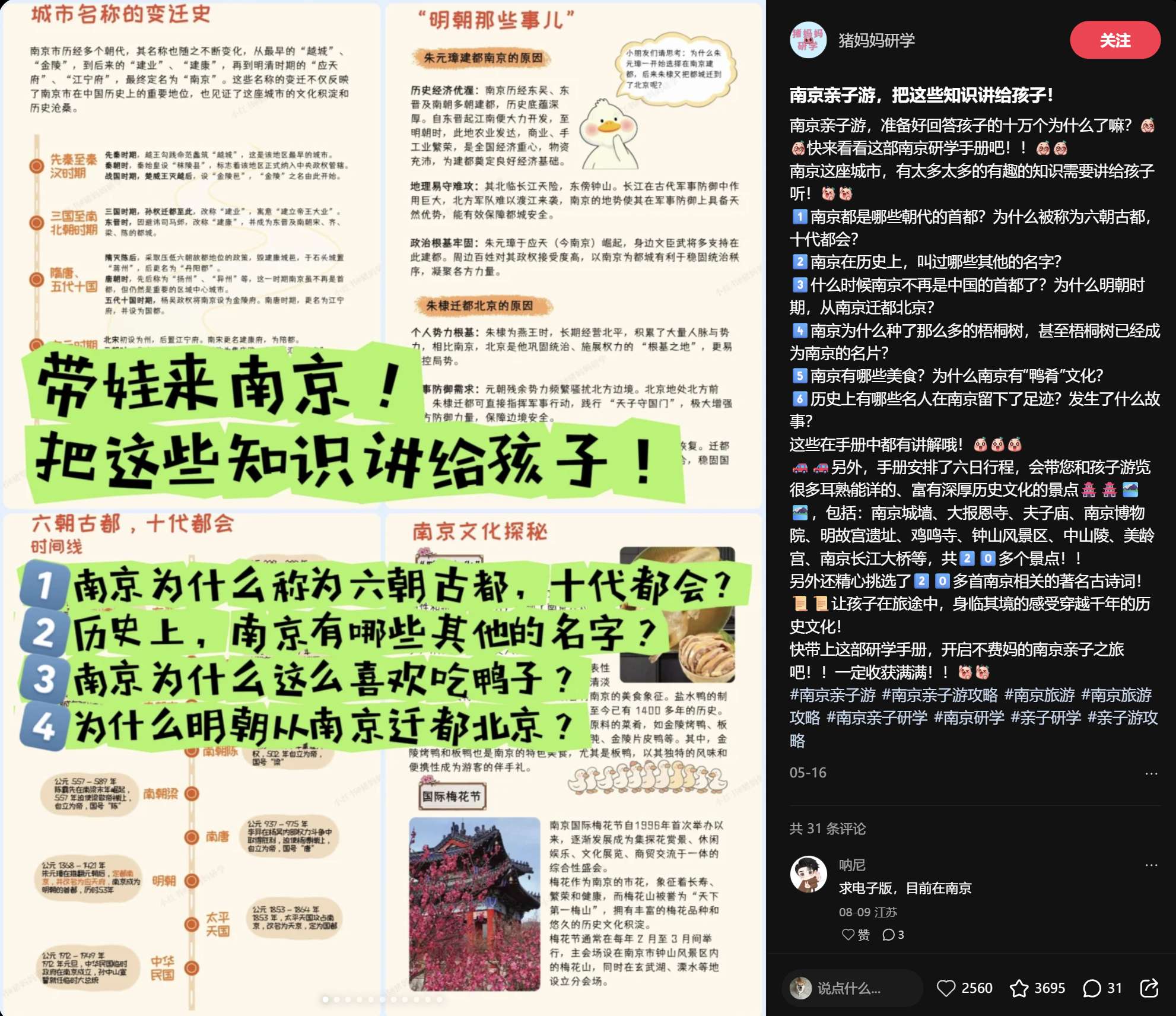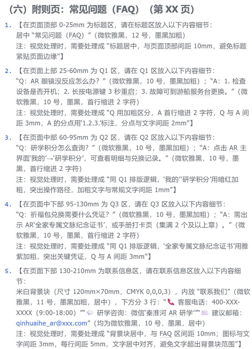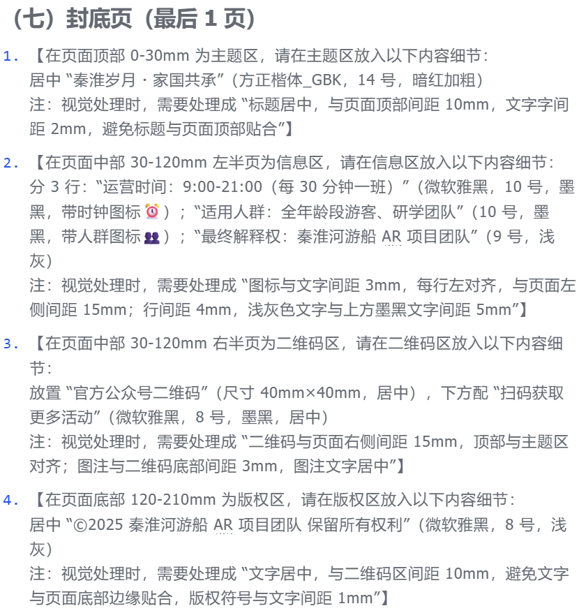 至于本手册对应的目录页、附则页、尾页,珍妮没有再生成了。因为这个内容,只需要去小红书查一下“文旅攻略手册”“西安文旅手册”“南京游学手册”,就可以找到大量的参考排版图。