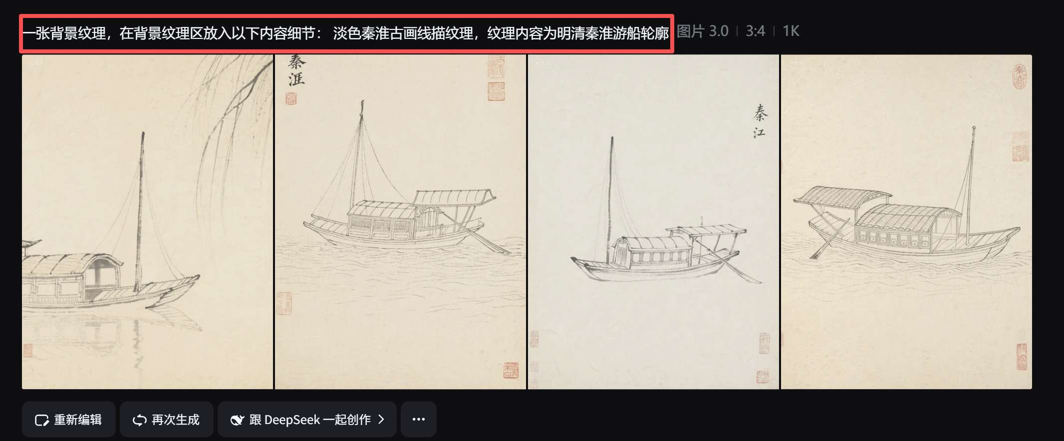 上面的游船、印章、信箱、AR眼镜图啥的,全是即梦AI生成的。一开始珍妮就让即梦AI生成暗红色的图标。