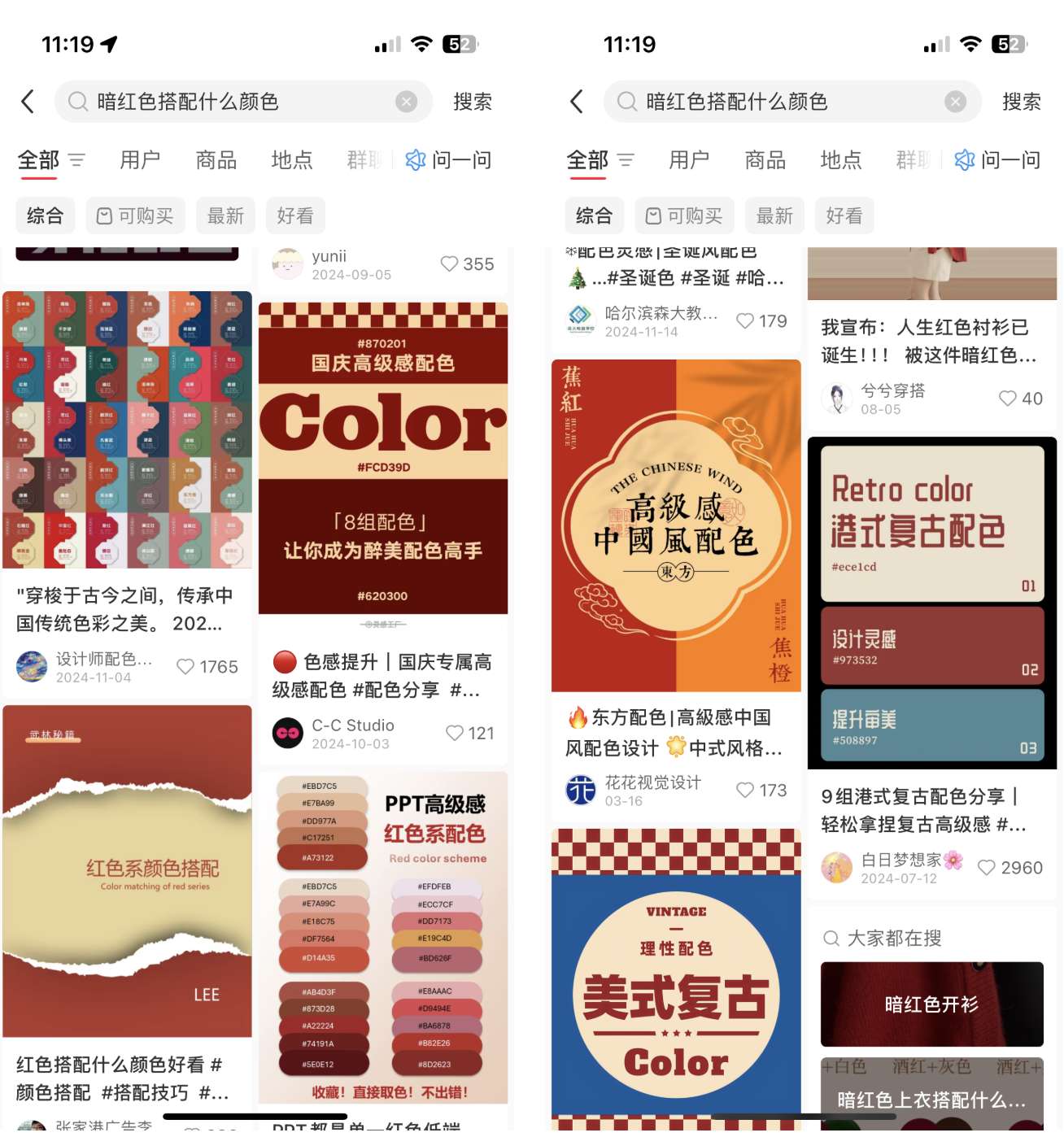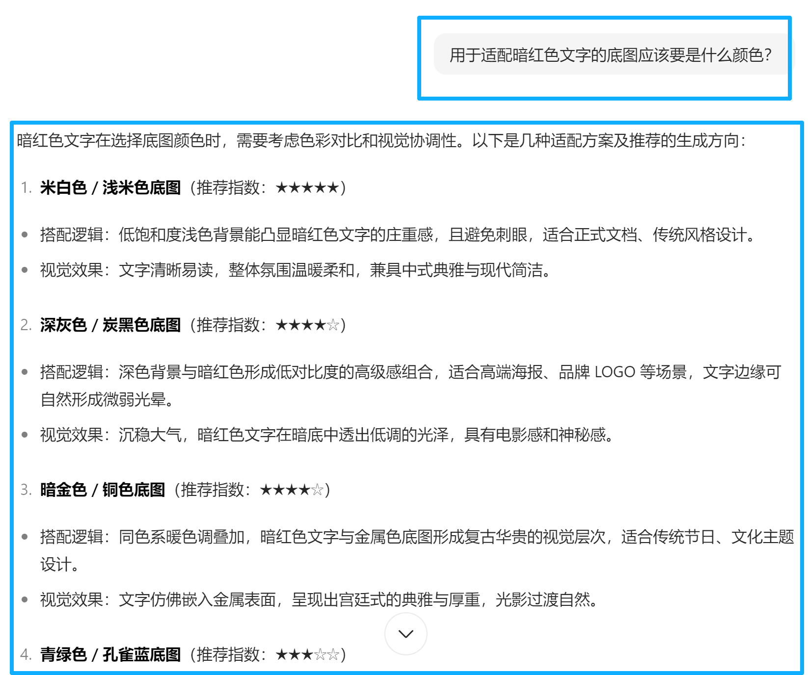 我先是查了一下小红书“暗红色配什么颜色”,然后被安利了“焦橙色”。于是我就让即梦生成焦橙色的图。