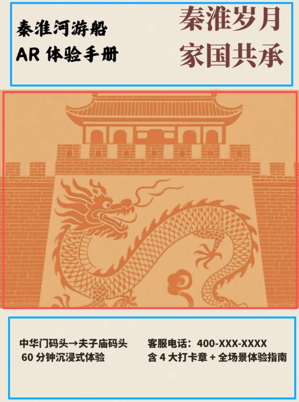 一开始豆包给我的排版提示词里,是把“秦淮岁月 家国共振”那几个词,设置为“暗红色”。