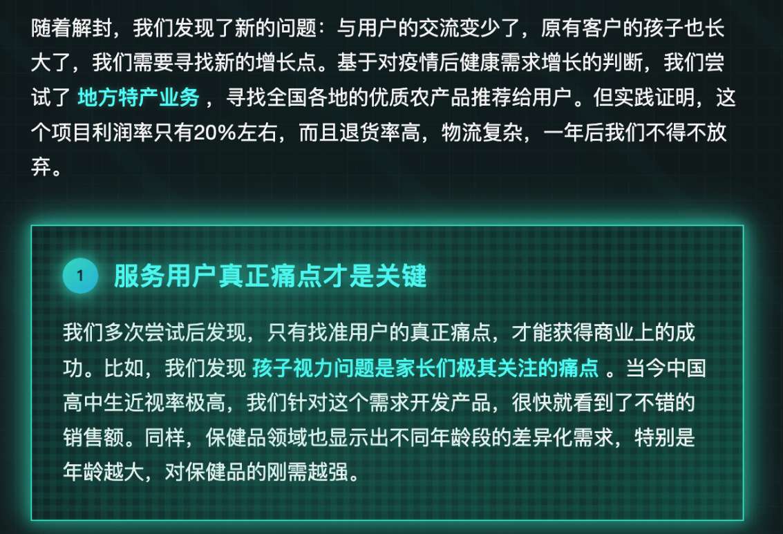 贵人和我说:“珍妮你停一下,你刚分享的这些东西我都知道,你要区分好你的目标用户是谁。我这种传统行业出来的老板,已经摸爬滚打很多年了,这些道理我们都懂。刚刚你说的,是这次航海家大会里“浮在表面上的东西”,背后的商业逻辑是XXXX,你不要只看到他的表面,你要去看他底层的东西。”