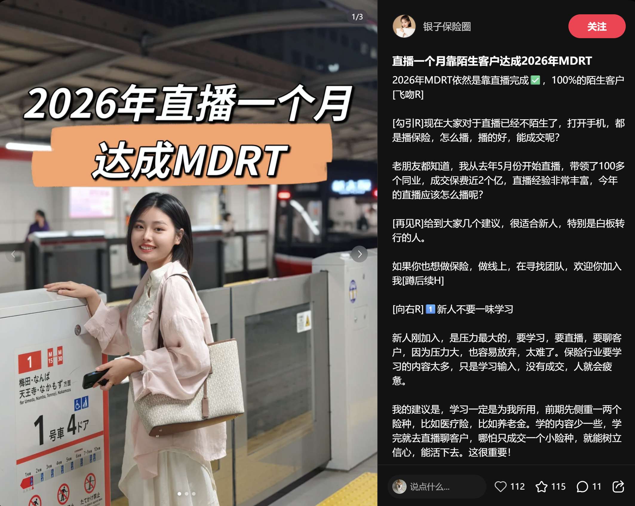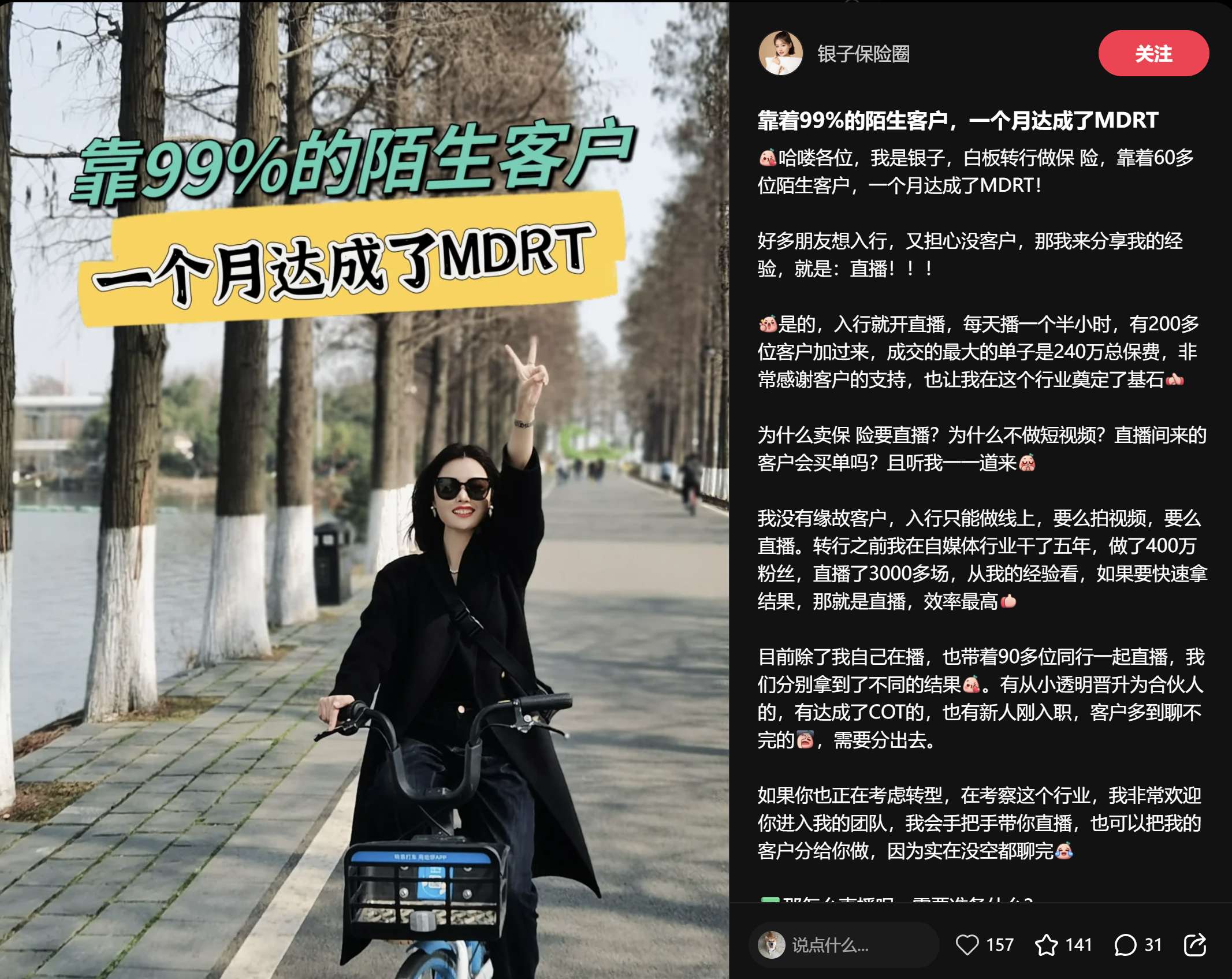 (注意了,之所以这个人说自己靠直播做成mdrt也有人信,是因为这个人确实在2024年曾经发过大量“如何做直播”的视频。)