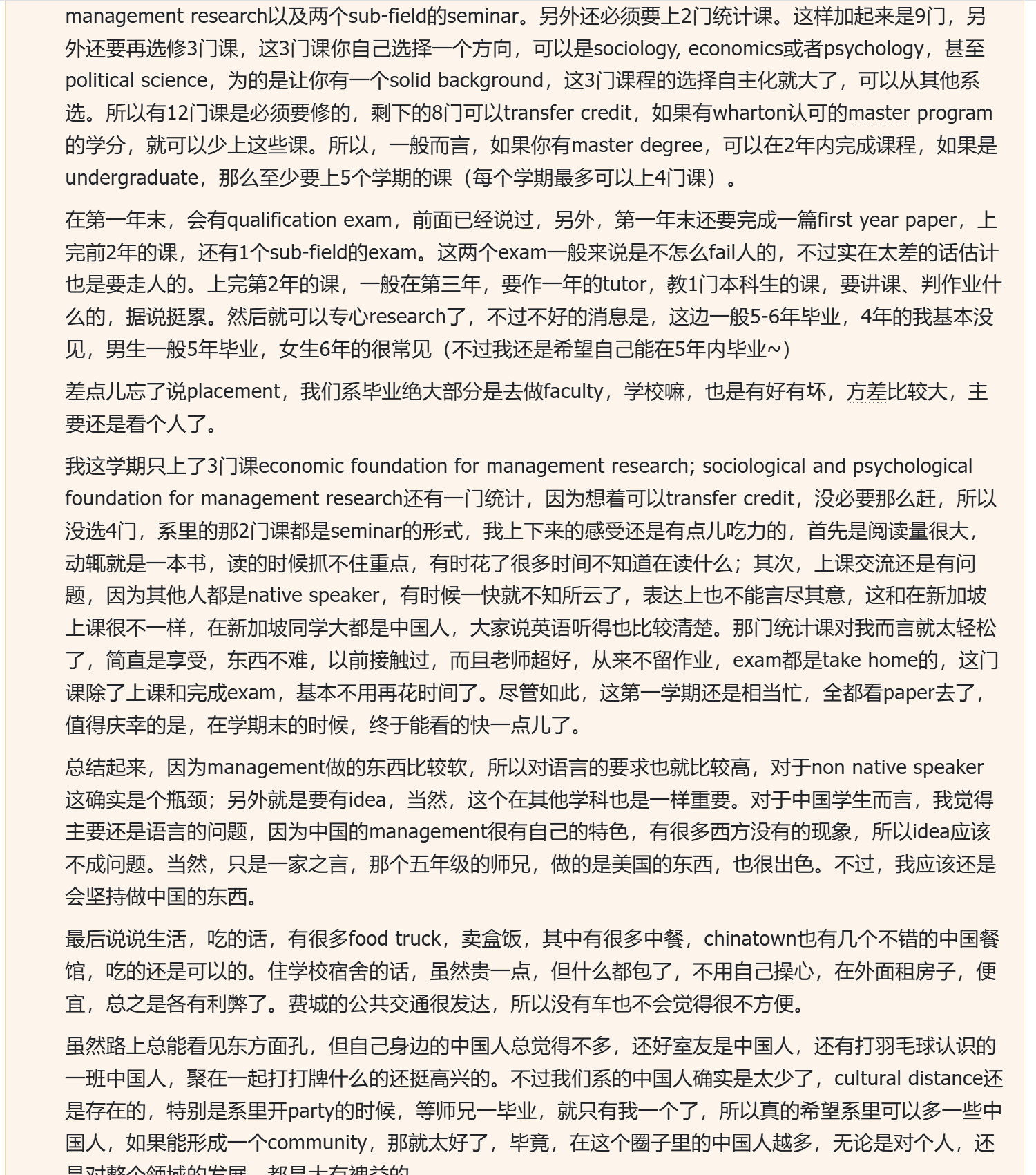 3)关于某个学生申博时的面试经验。(行话又叫做“面经”)