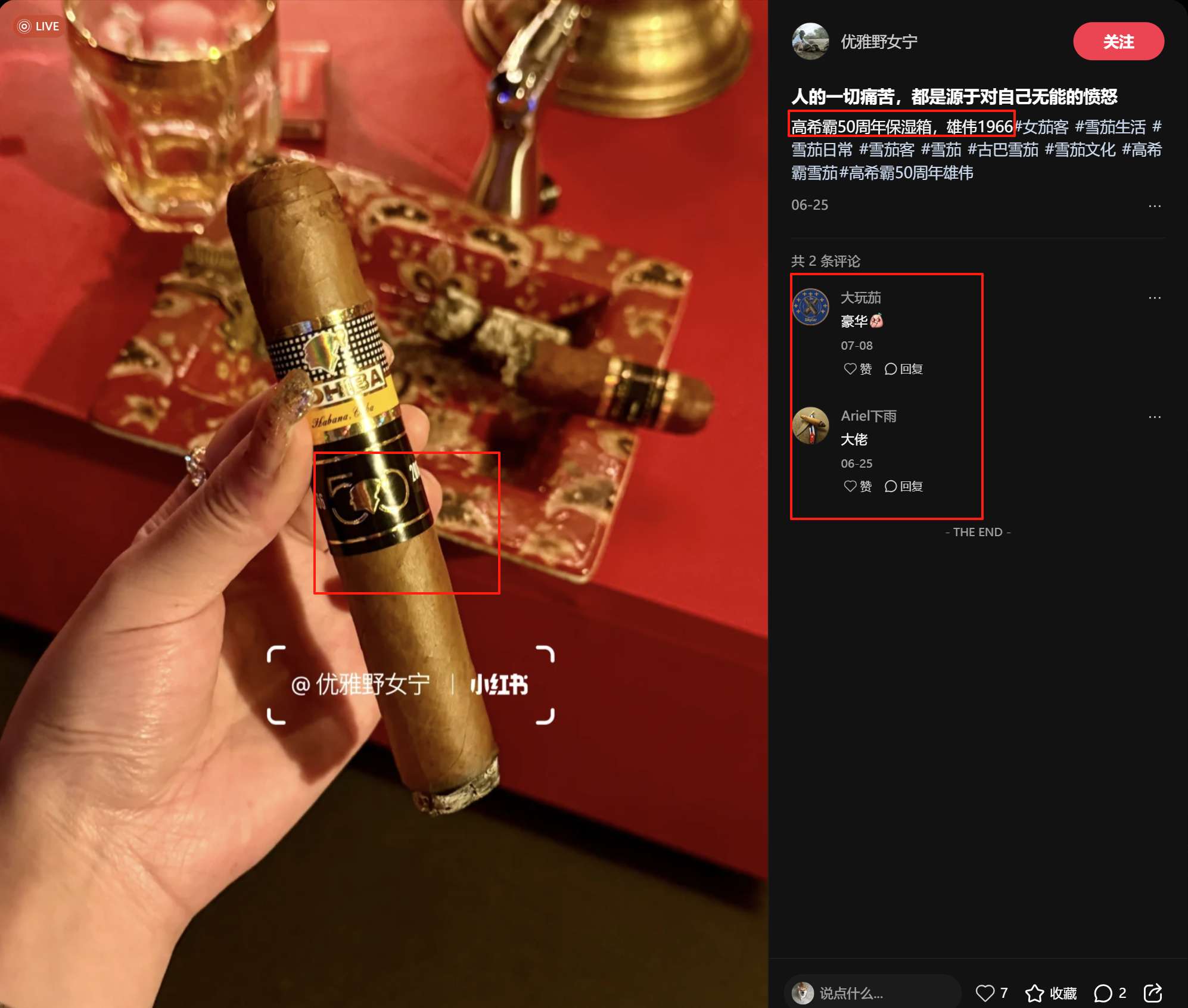 有人在评论区问“这是哪家”,说明这个封面图足够吸引人。如果我们线下的雪茄吧也有类似的效果,也是能吸引到精准客户的。