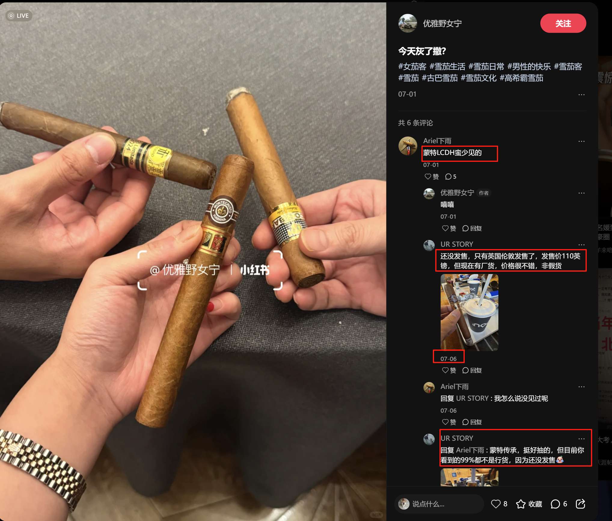 如果我们想要引起网友评论,或者吸引资深茄客,我们就晒蒙特LCDH的茄标。长上图这样。