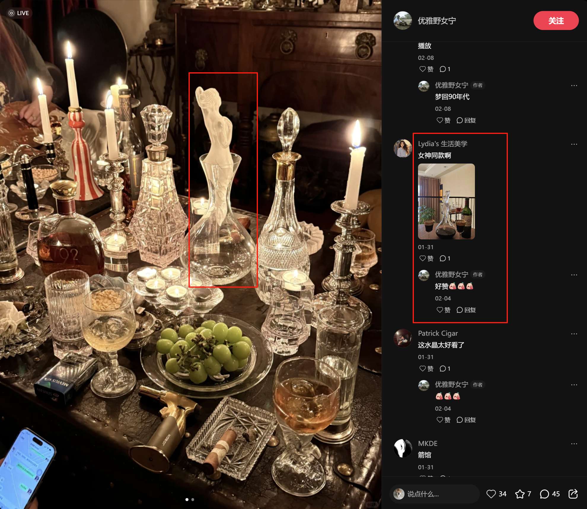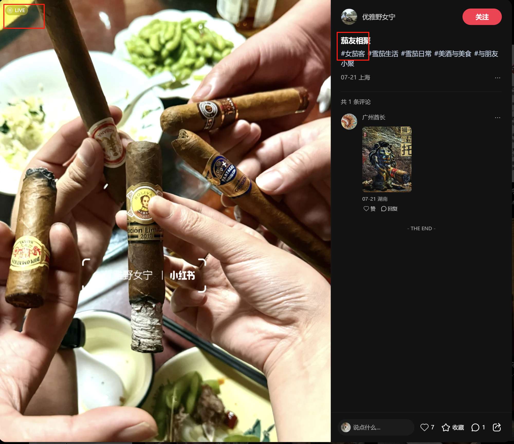 注意上图左上角红圈处的live。珍妮观察了线下雪茄吧赛道的很多图片,发现基本都是实况照片。盲猜实况照片在这个赛道就是加分项。