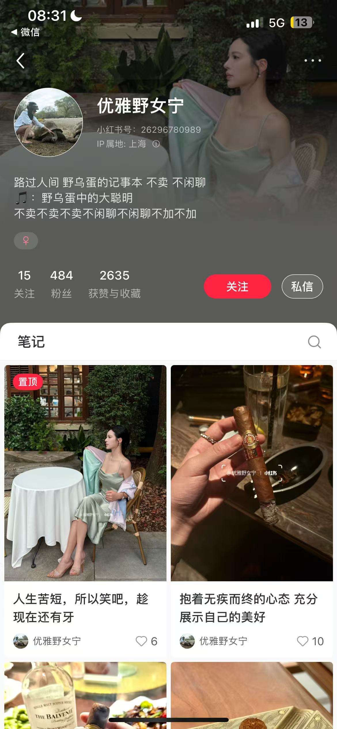 一般看主页都优先看置顶笔记。置顶笔记代表了这个博主想要吸引什么样的客户。