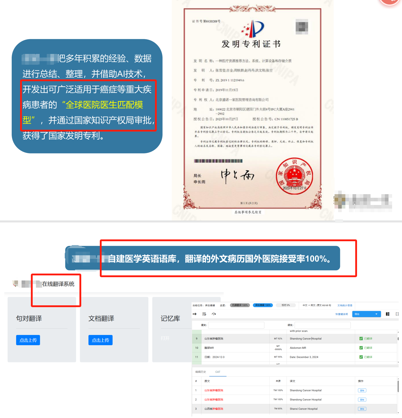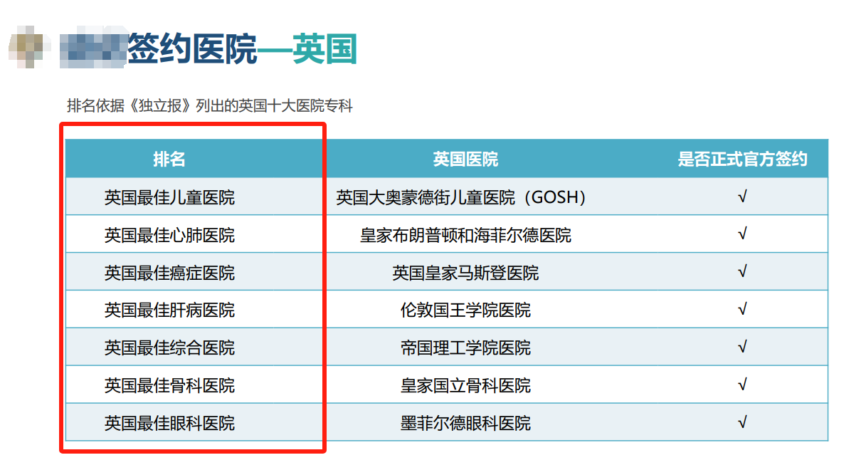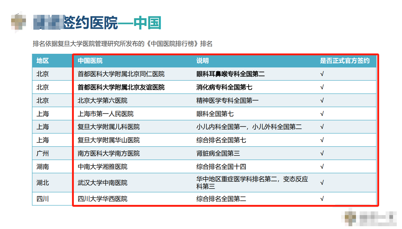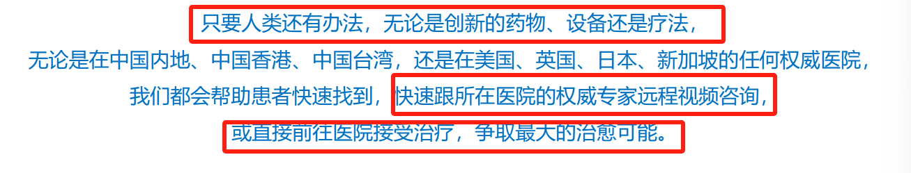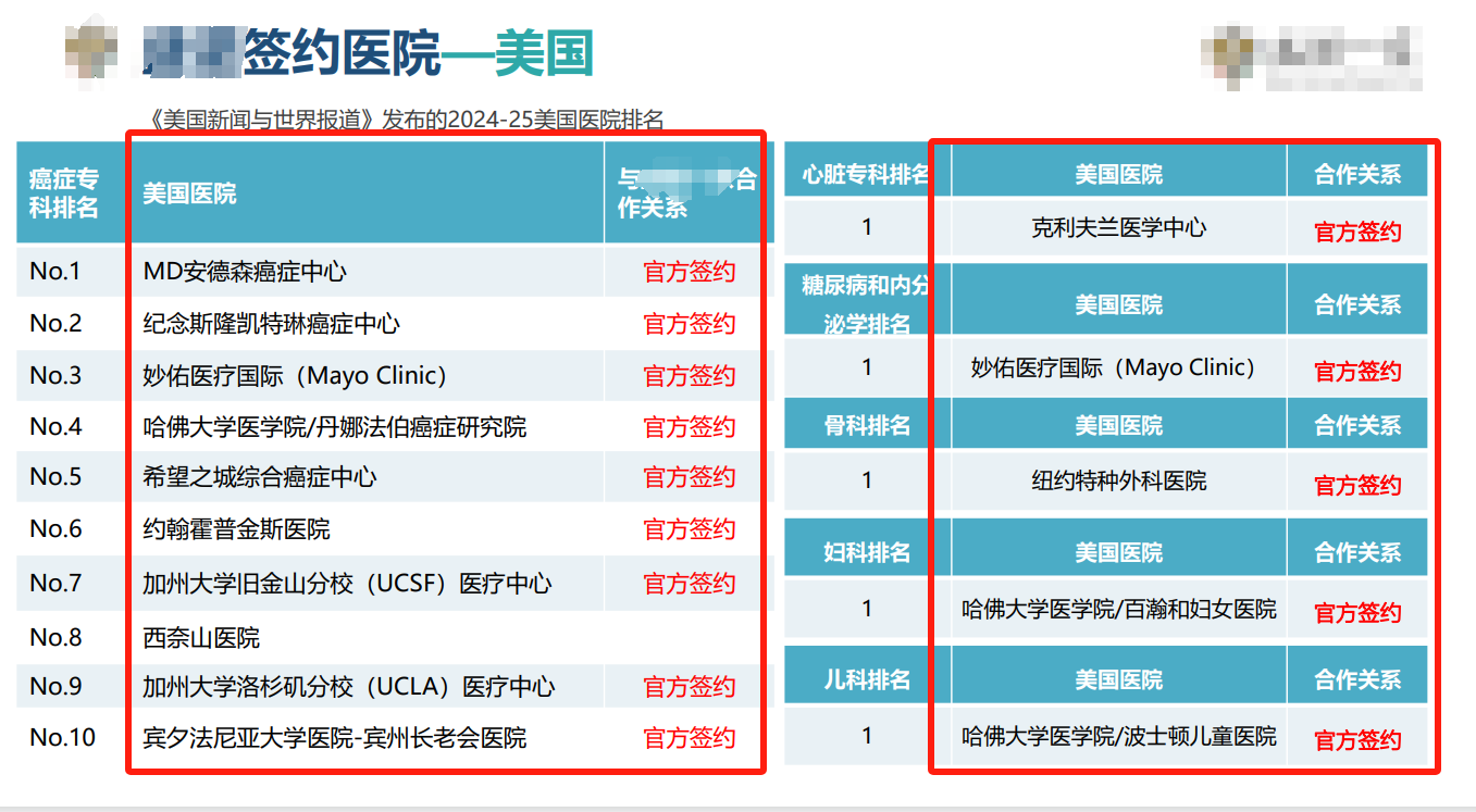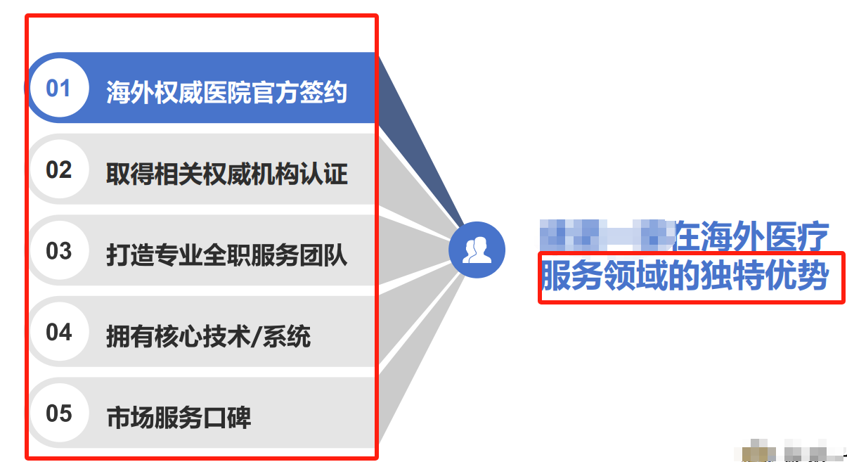 A)海外权威医院官方签约(比如安德森医院的国外转诊授权,在国内只授权给了我们一家)
