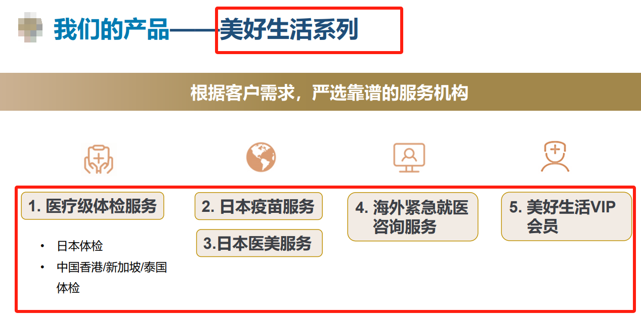 不管是国内还是国外就医,我们还能提供的其他产品有(卖会员。会员产品又被叫做“美好生活系列”):