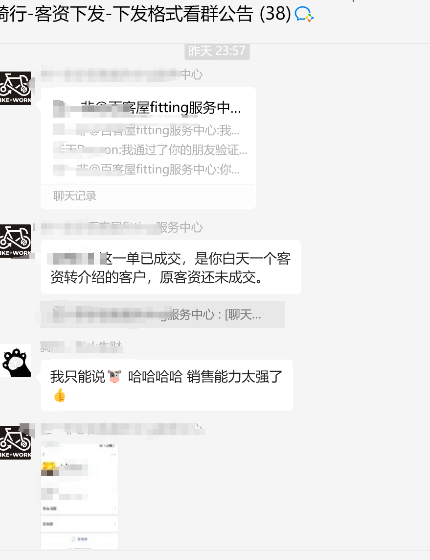 就是我和自行车经理聊天,他给我看了同行是如何让客户来加咱们微信号的。