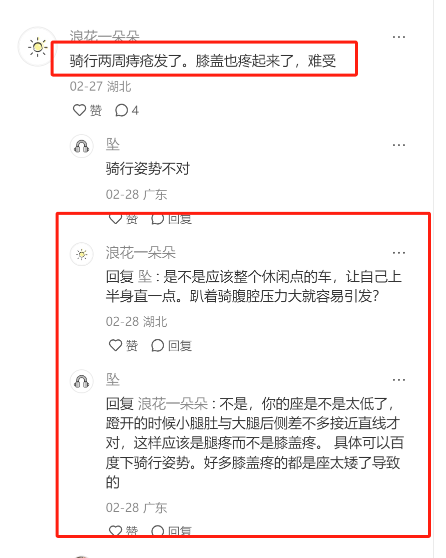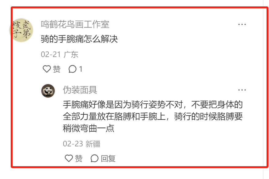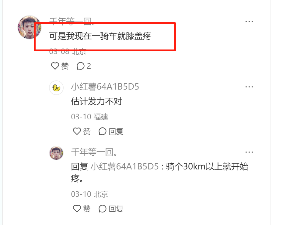 (这个我们要去小红书搜“骑行酸疼麻”,然后把小红书的吐槽帖,评论区用户评论看一看,把这些用户评论改写一下,放到咱们小红书笔记的开头段,不就完了嘛?珍妮分享避雷群以来,一直在和大家强调:一定要戳用户痛点,戳痛点。你不知道怎么戳痛点,你就这样搜。你不知道找到痛点后应该怎么写,你就统统往第一段放,第一段吸睛嘛因为!)