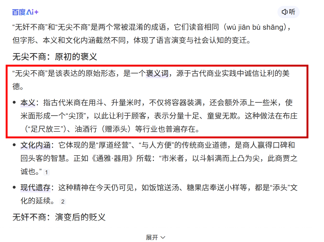 这条视频还特意植入了一个成语故事,提到“无奸不商”这个被人误传的故事,背后的真实情况是什么意思。