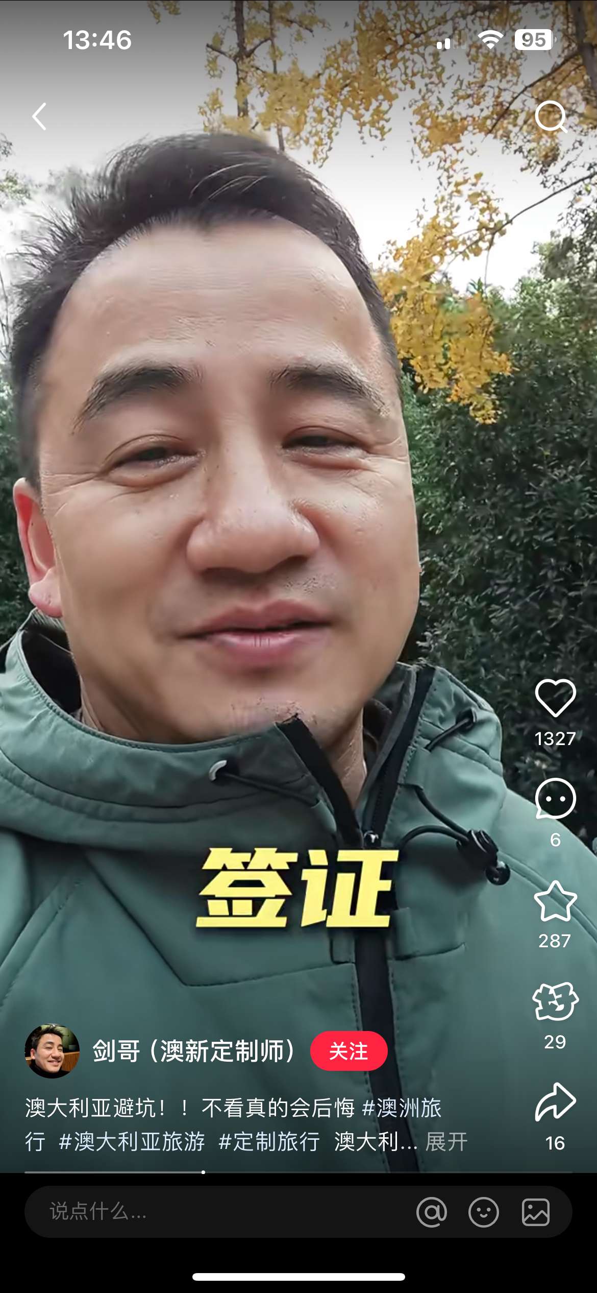 我们先来看看这个短视频,(是没有IP效果的),但是因为视频号上的旅游流量好做,所以即使没有IP色彩也能在视频号上快速拿到流量:
