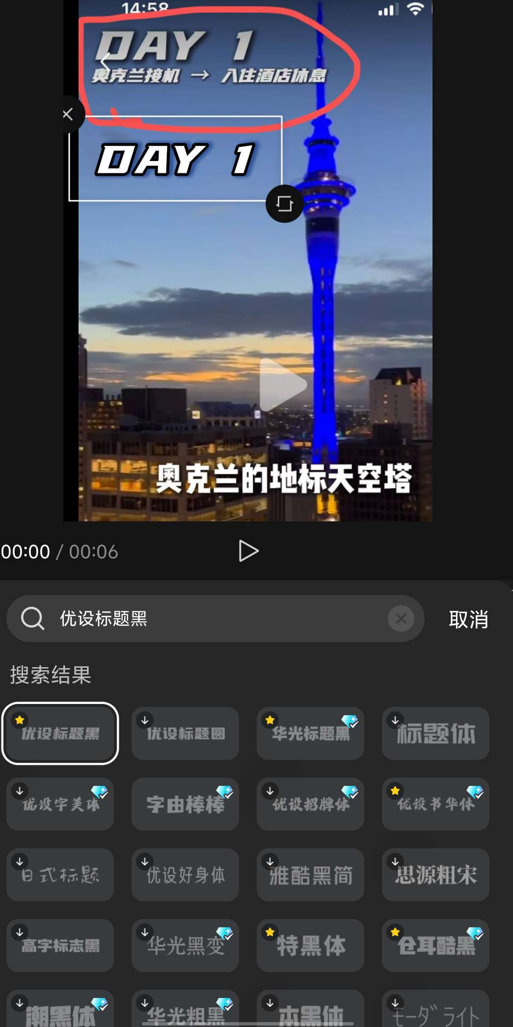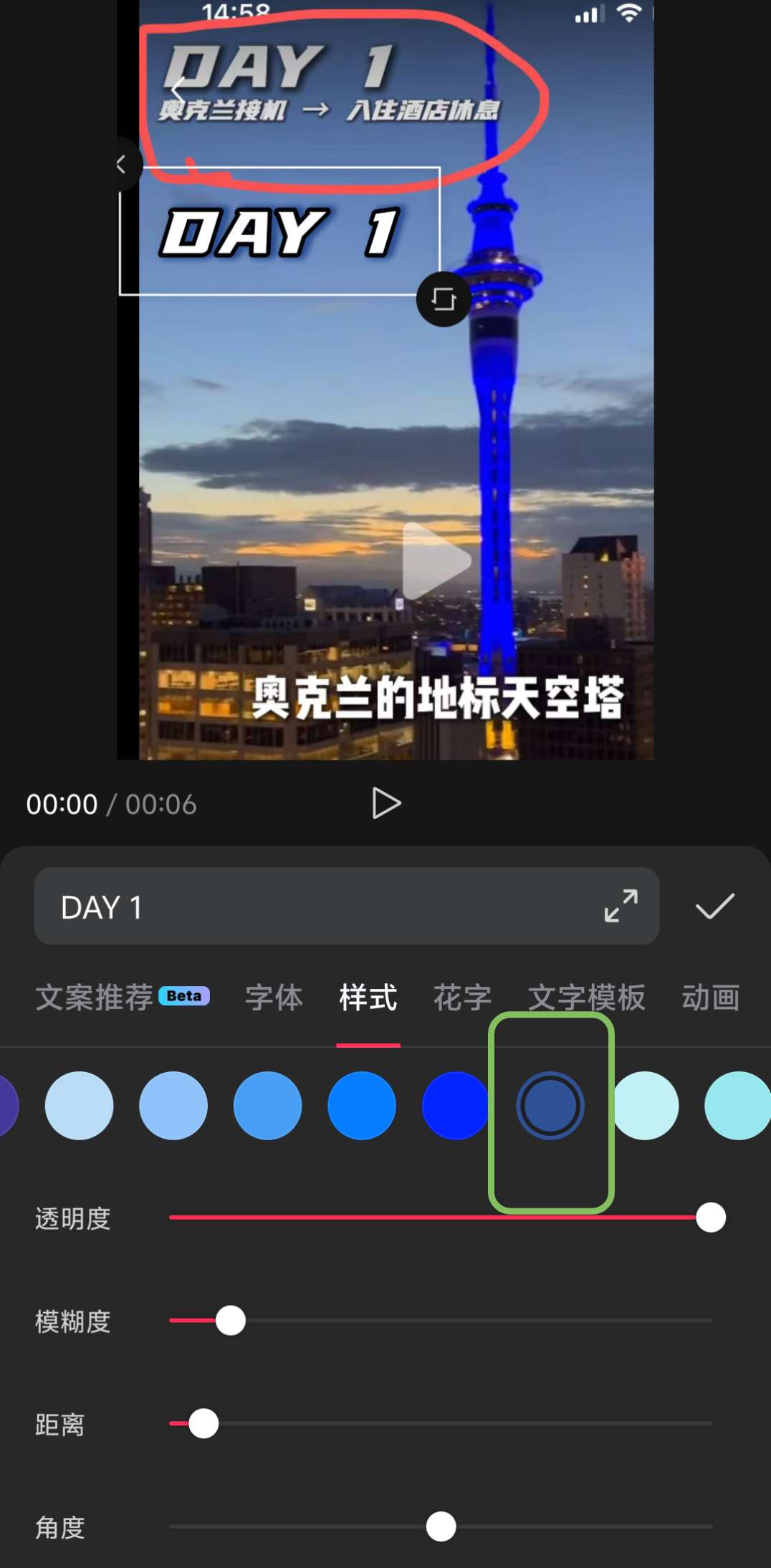 中间的day1-day7的行程(也就是从0分26秒开始,这里珍妮快速调了一下进度条),全是视频混剪,然后用AI提取了他本人的音色,让AI自动生成。
