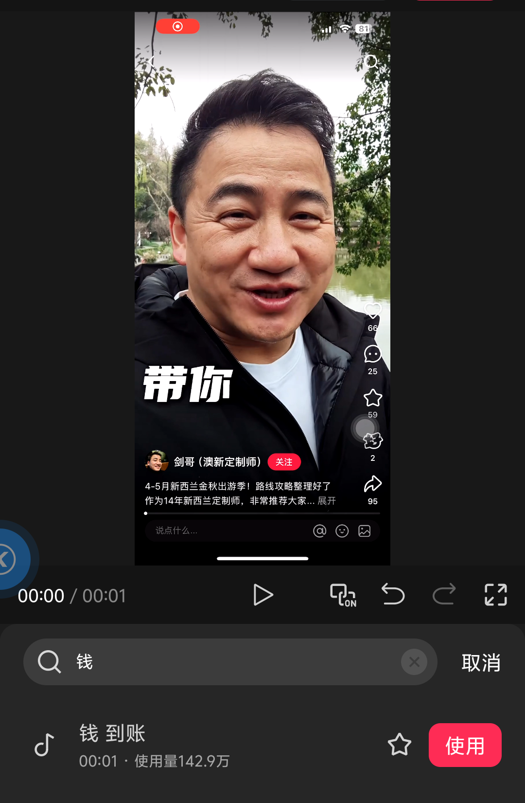 再比如这个短视频,就是把小红书上关于出行行程&出行所需费用的内容,配上网红爆款的视频美景,就做好了,可以搬运到视频号。