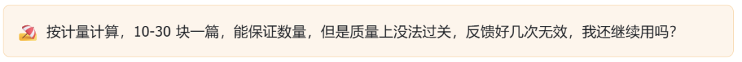按计量计算,10-30 块一篇,能保证数量,但是质量上没法过关,反馈好几次无效,我还继续用吗?
