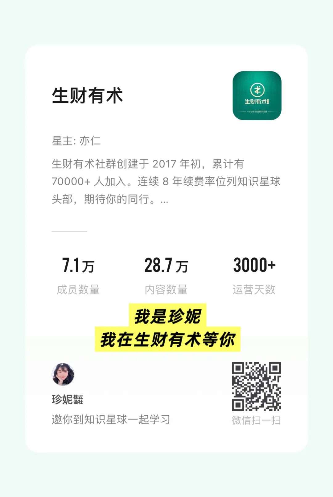 同时,我会有一个自己的知识星球,是个小星球。我会邀请我们公司的员工进去。