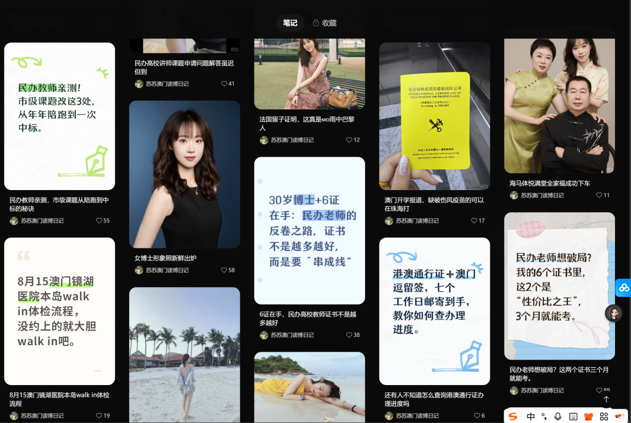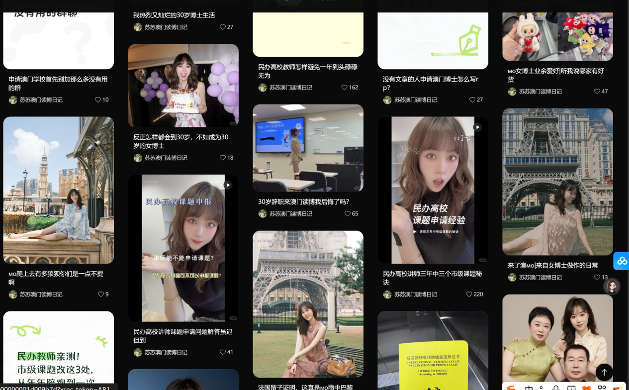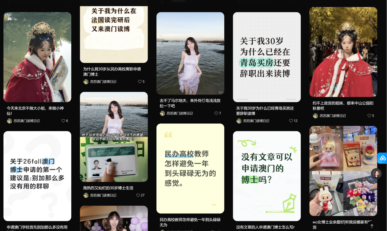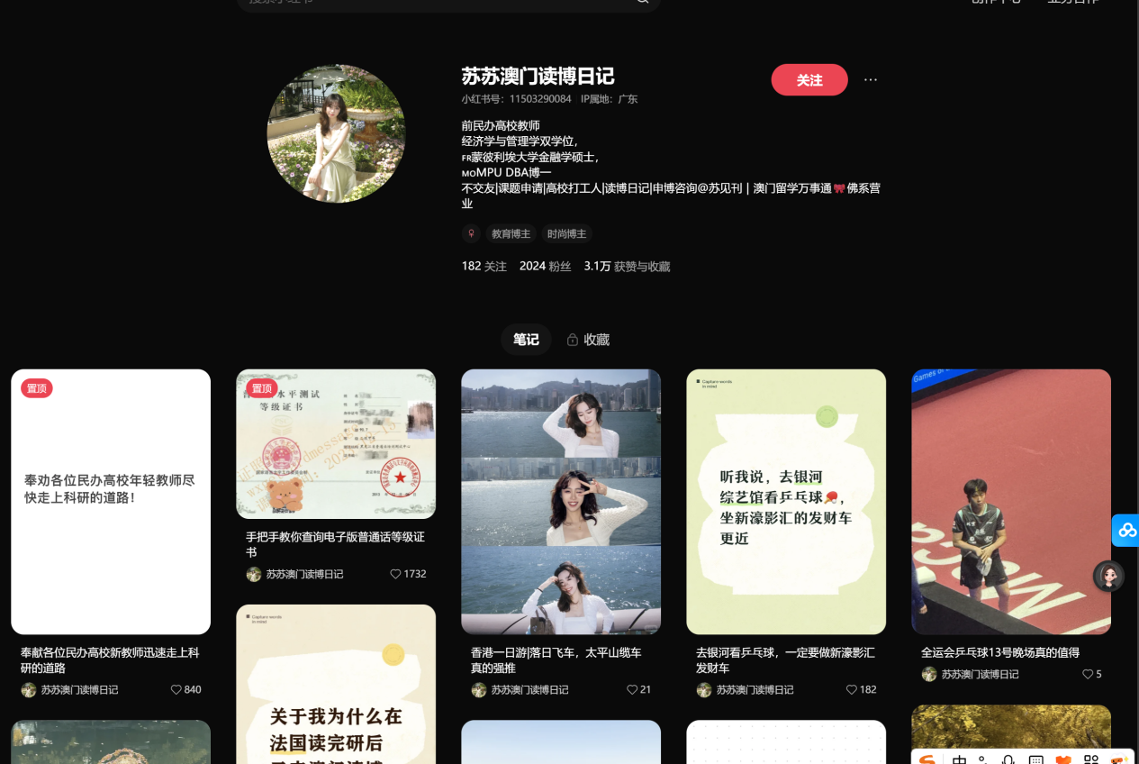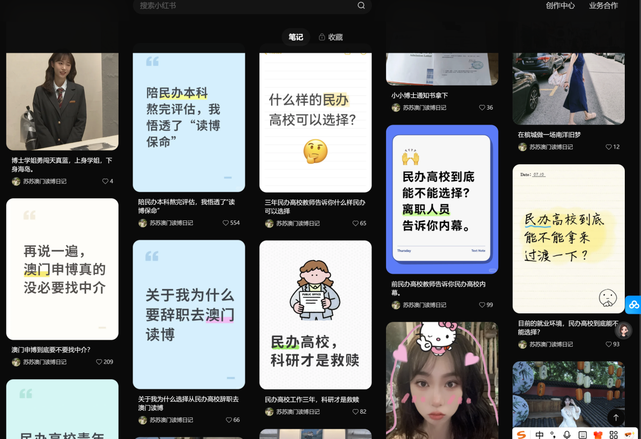 我们会发现:她主页内容非常丰富,她没有一直围绕澳门读博去写,而是一直在提民办高校的事情,