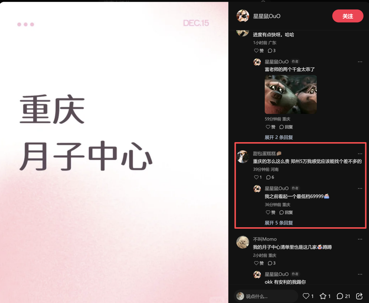 因为她竟然发:自己在读博之后,已经怀上了孩子,在找重庆的月子中心。