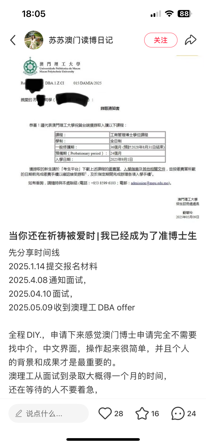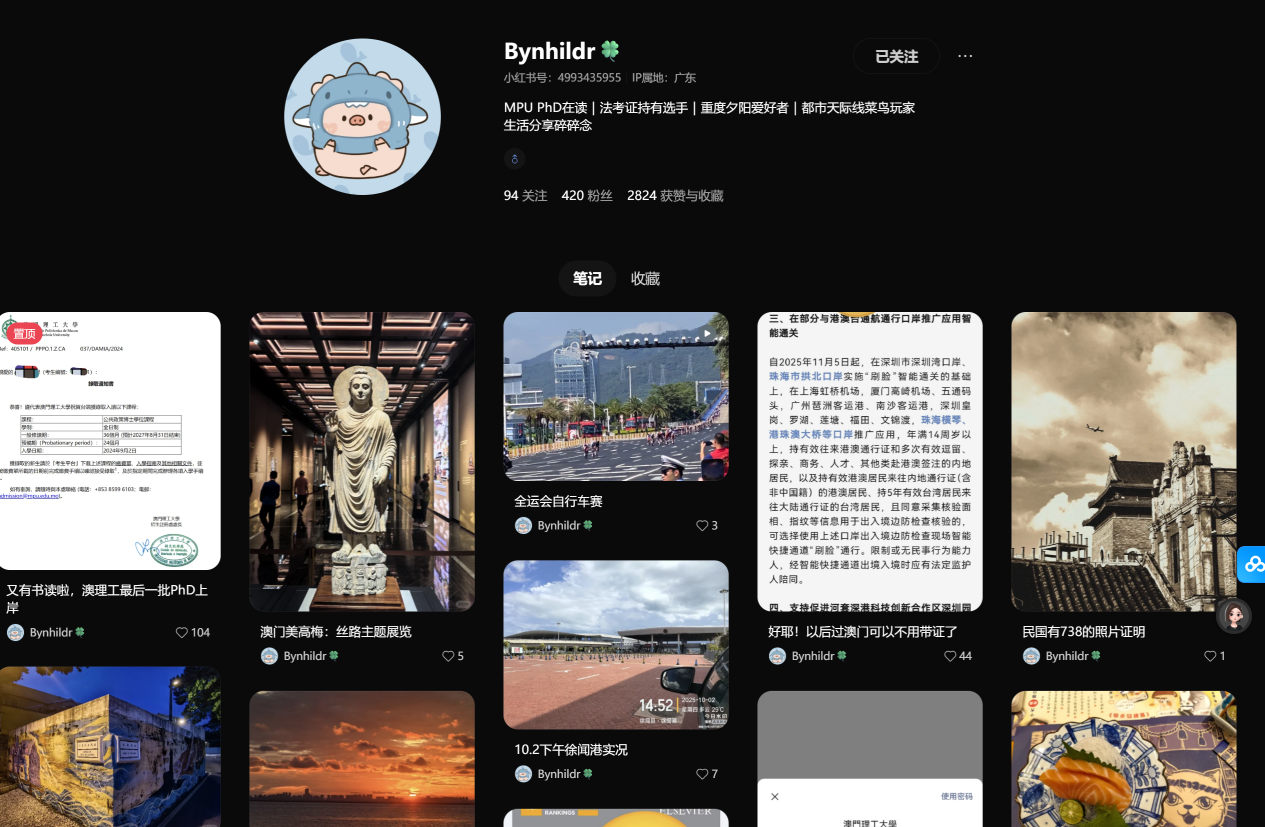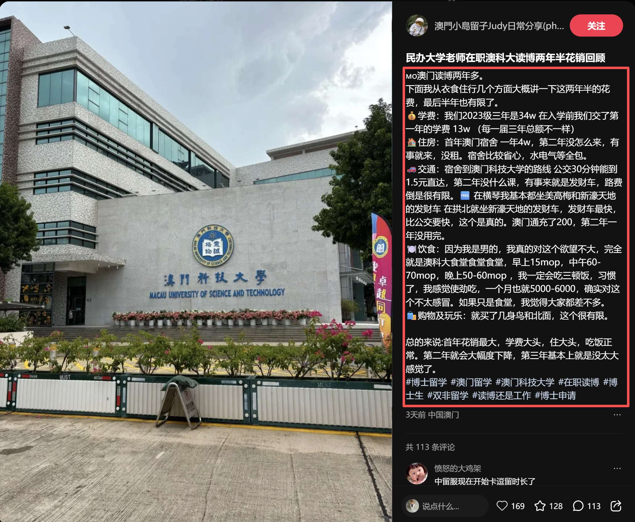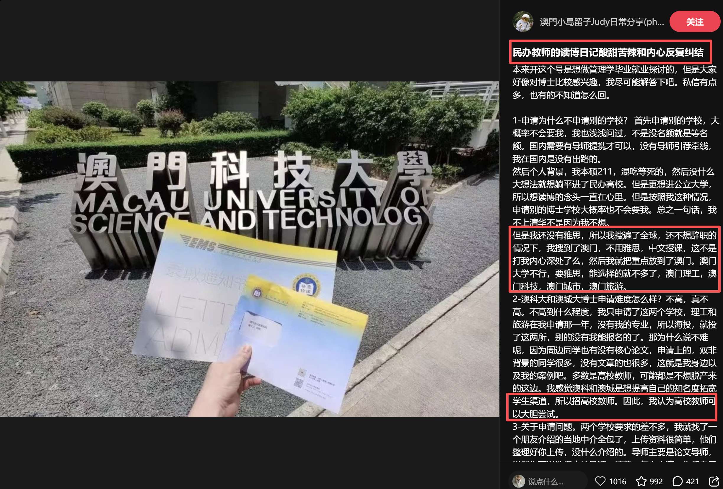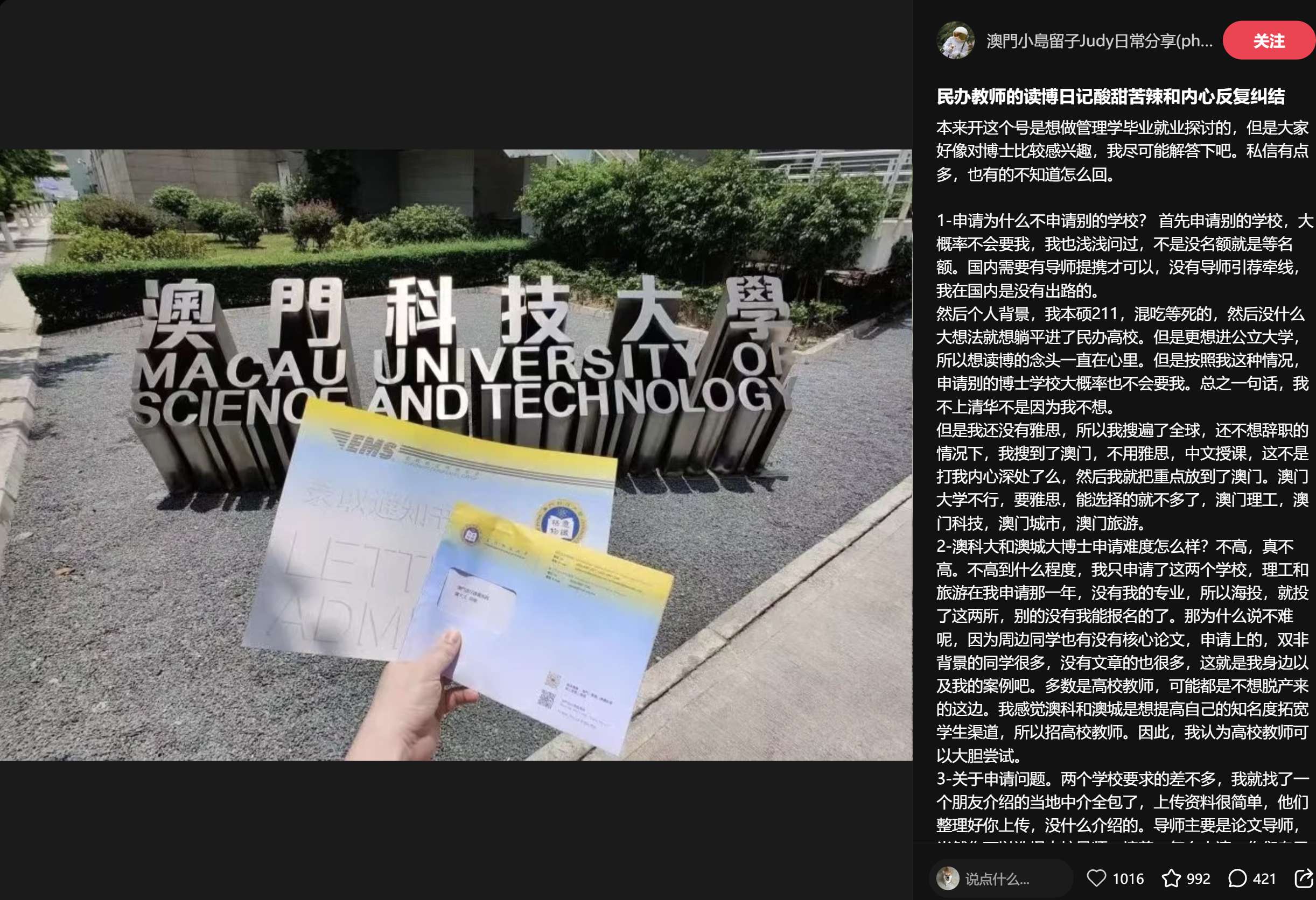 因为他分享了很多在澳门读博的经历。