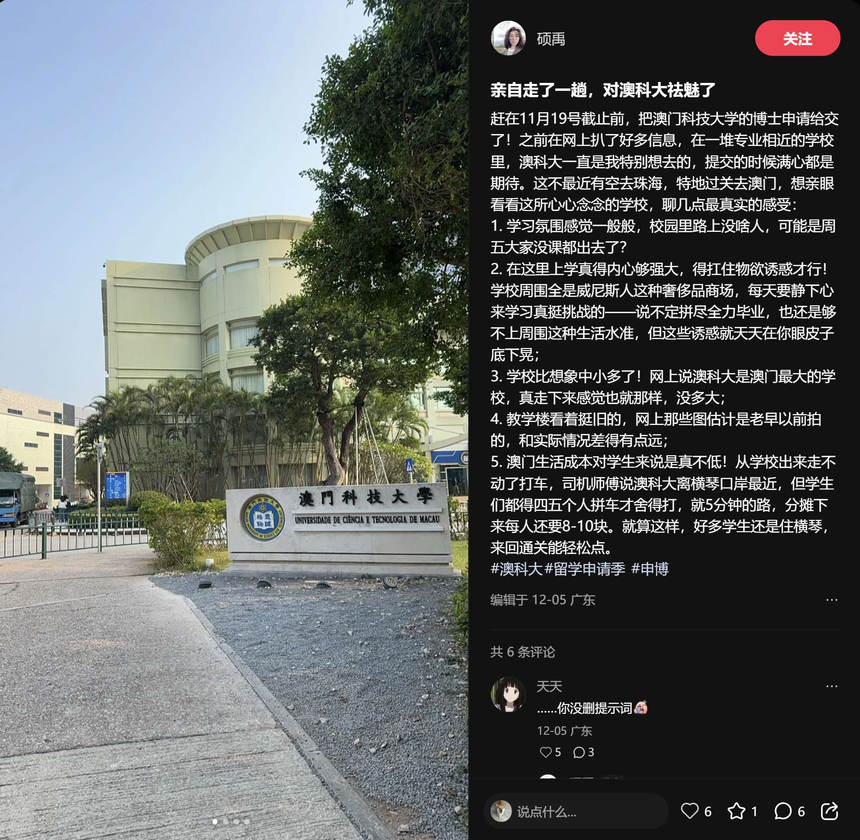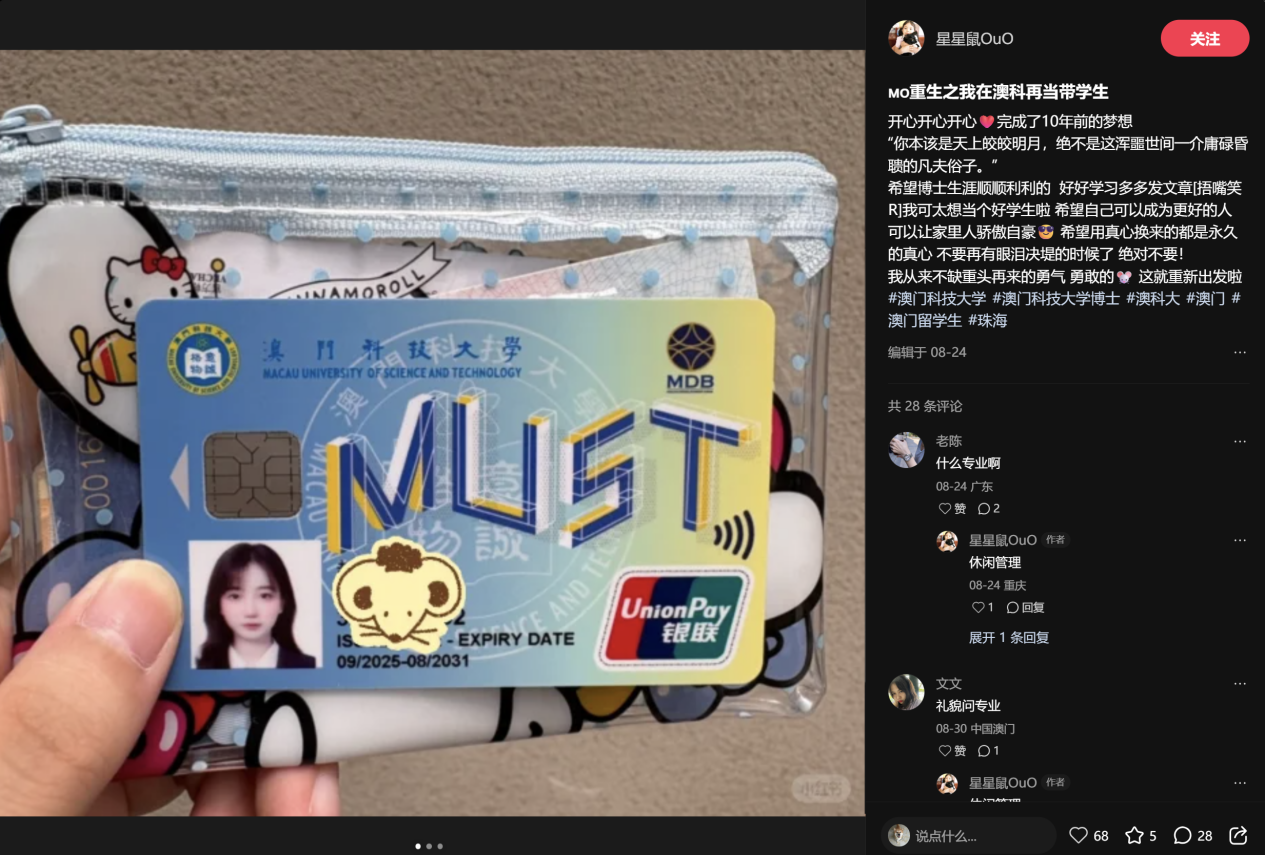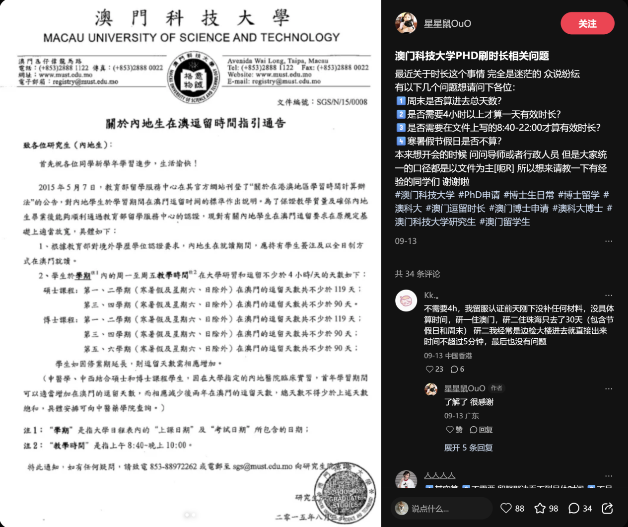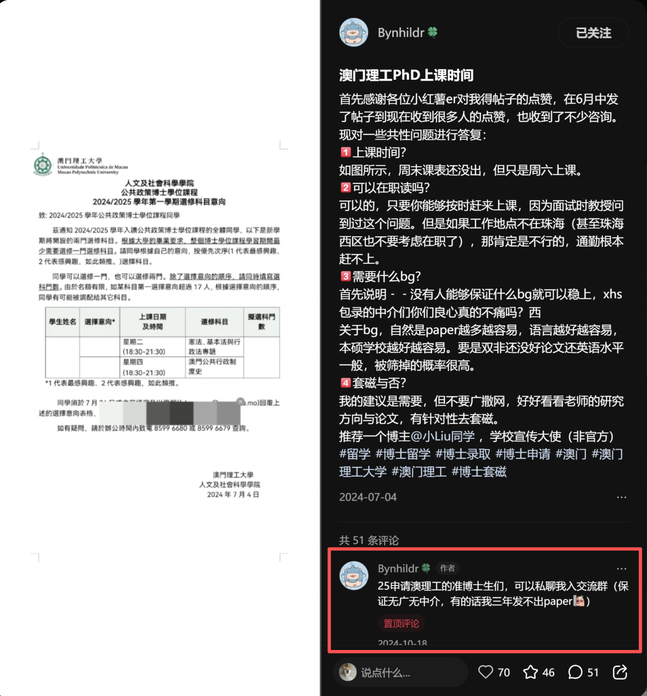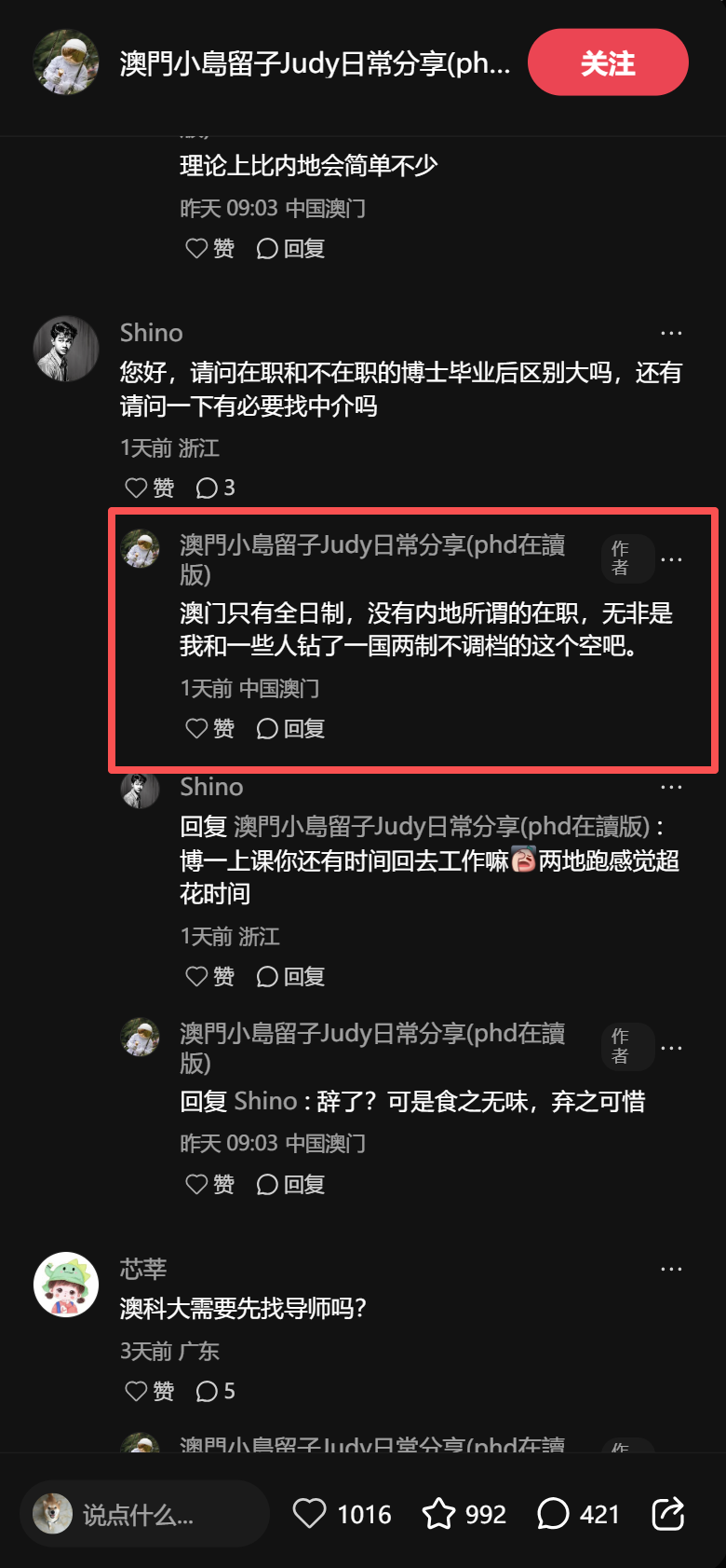因为他分享了很多在澳门读博的经历。