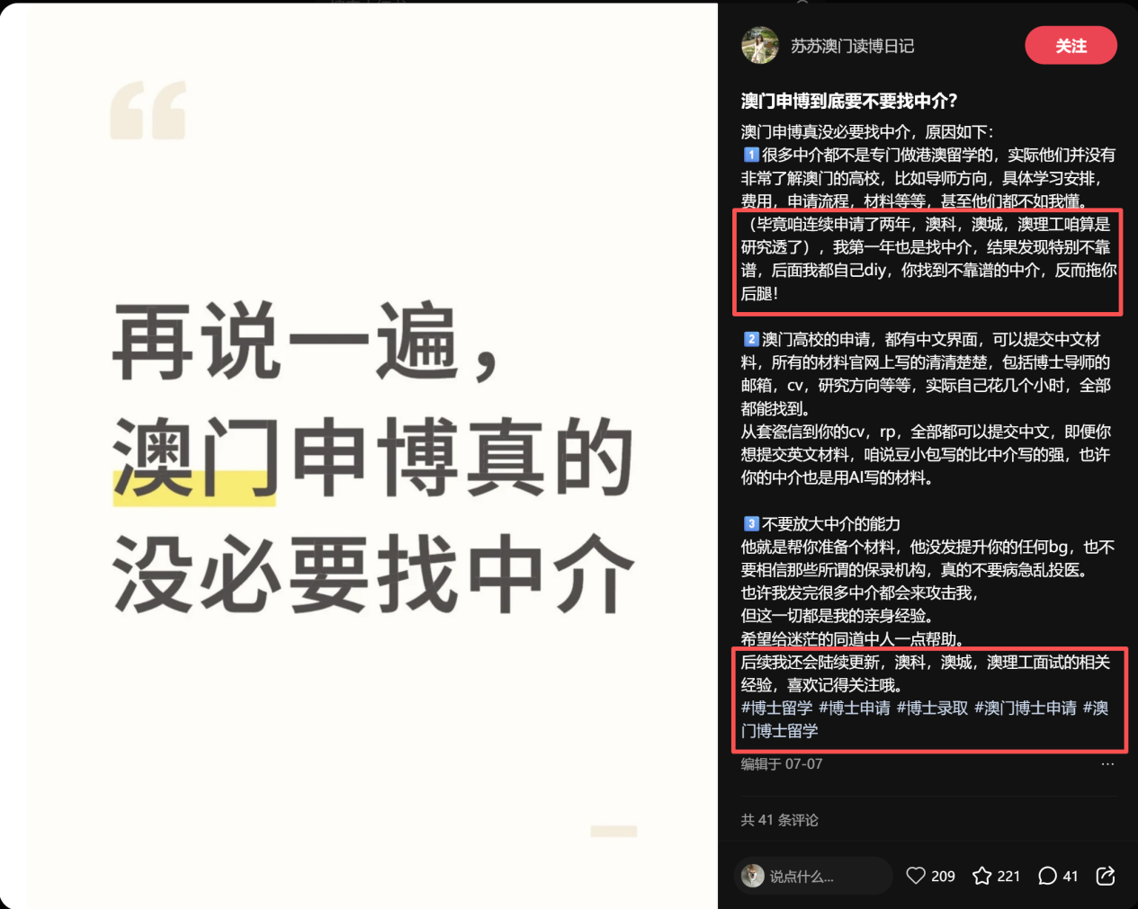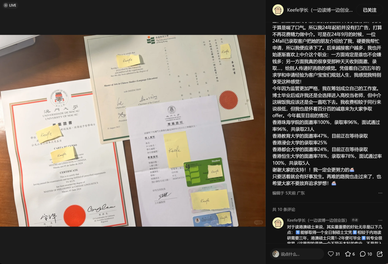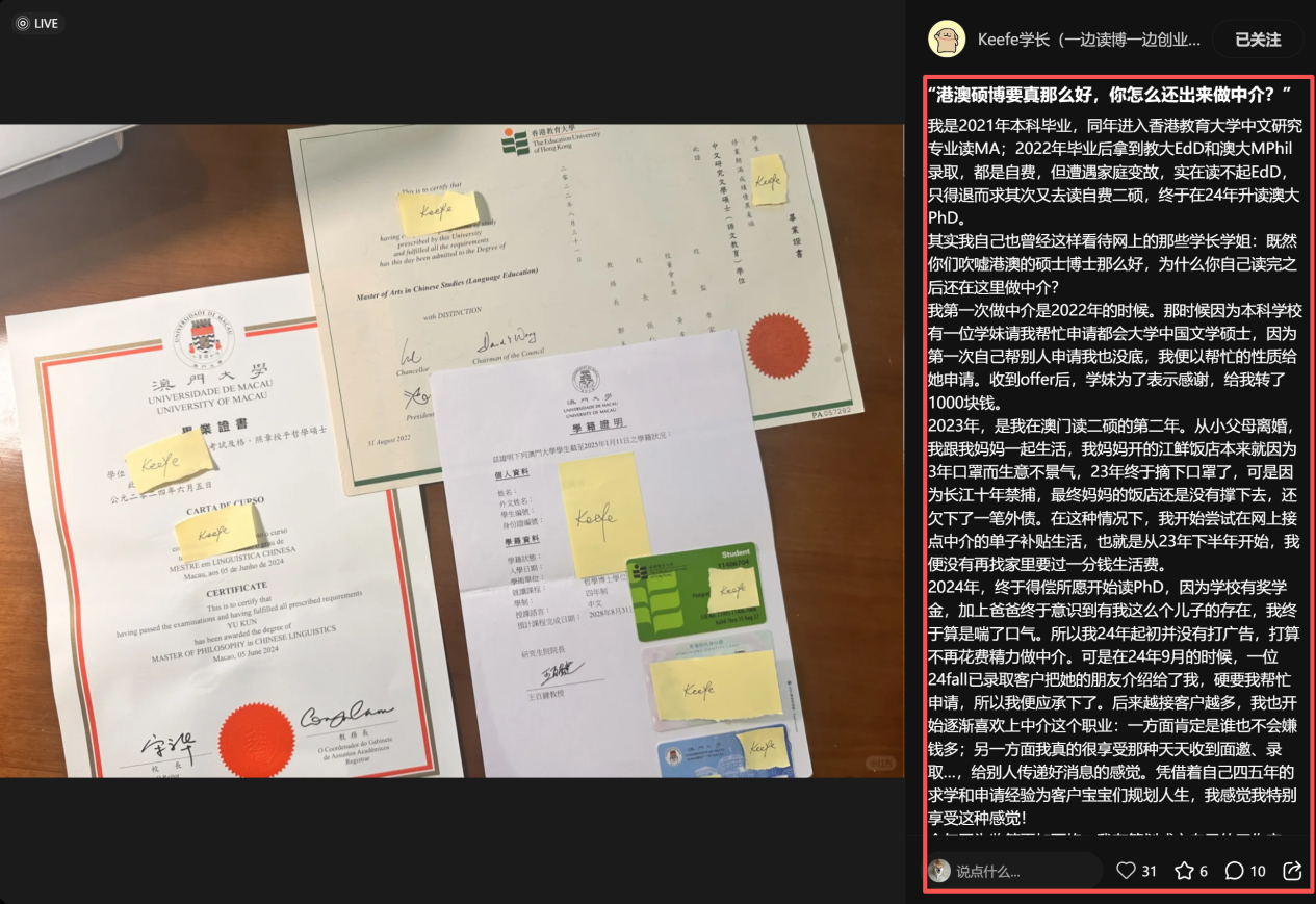 但是注意,这个账号的博主不是留学中介,