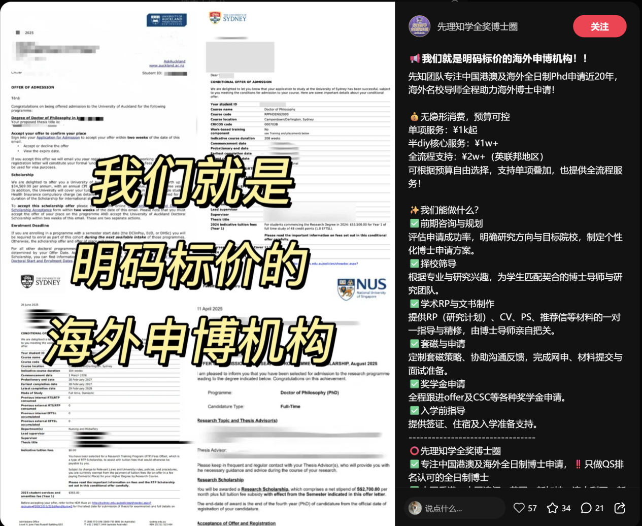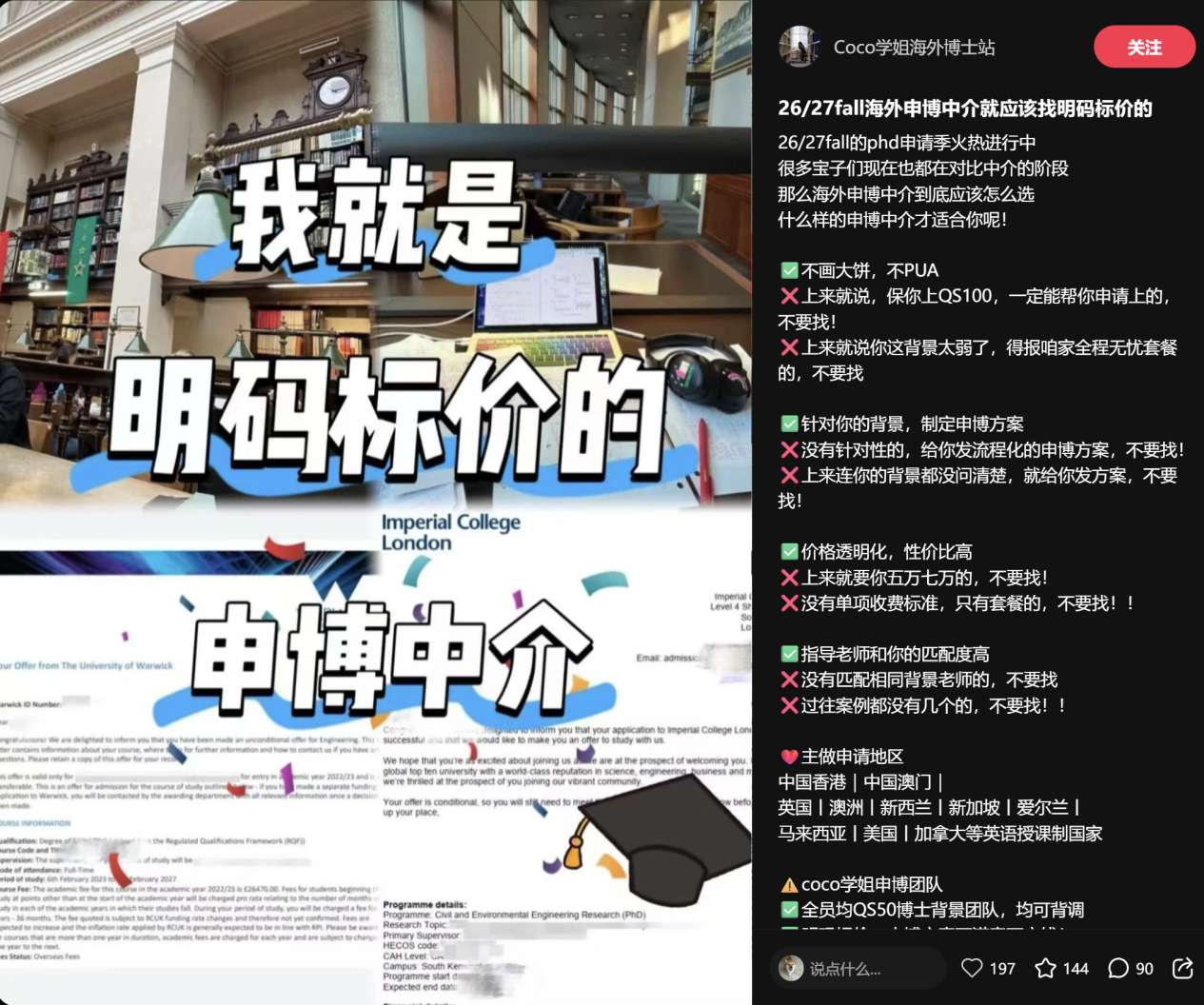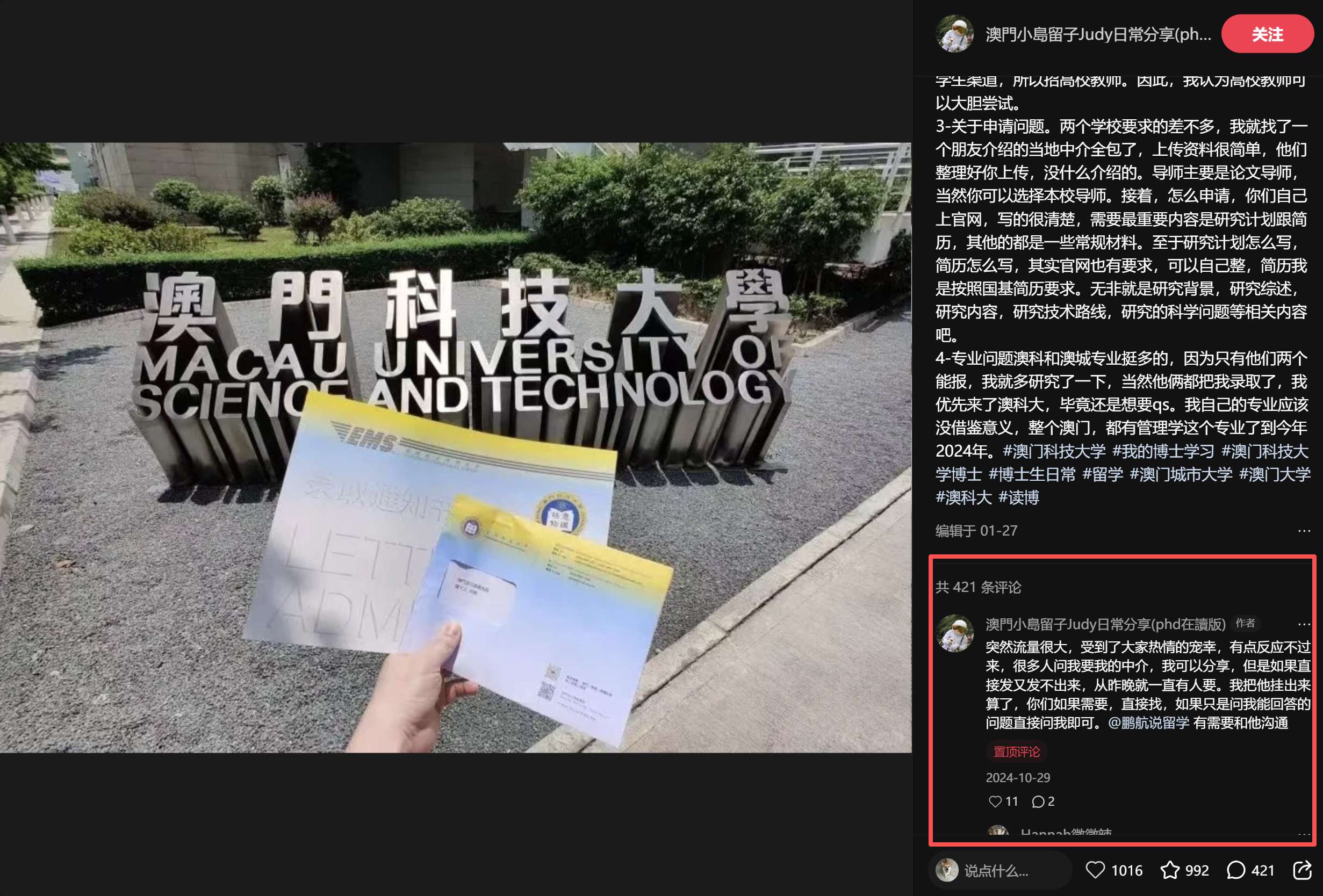 但是注意,这个账号的博主不是留学中介,