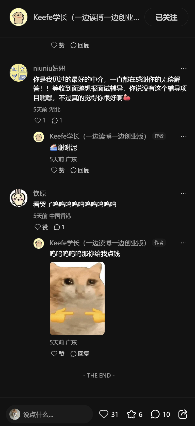 我们如果一直拖到评论区的话,能够看到:确实是有人在留言求中介的。