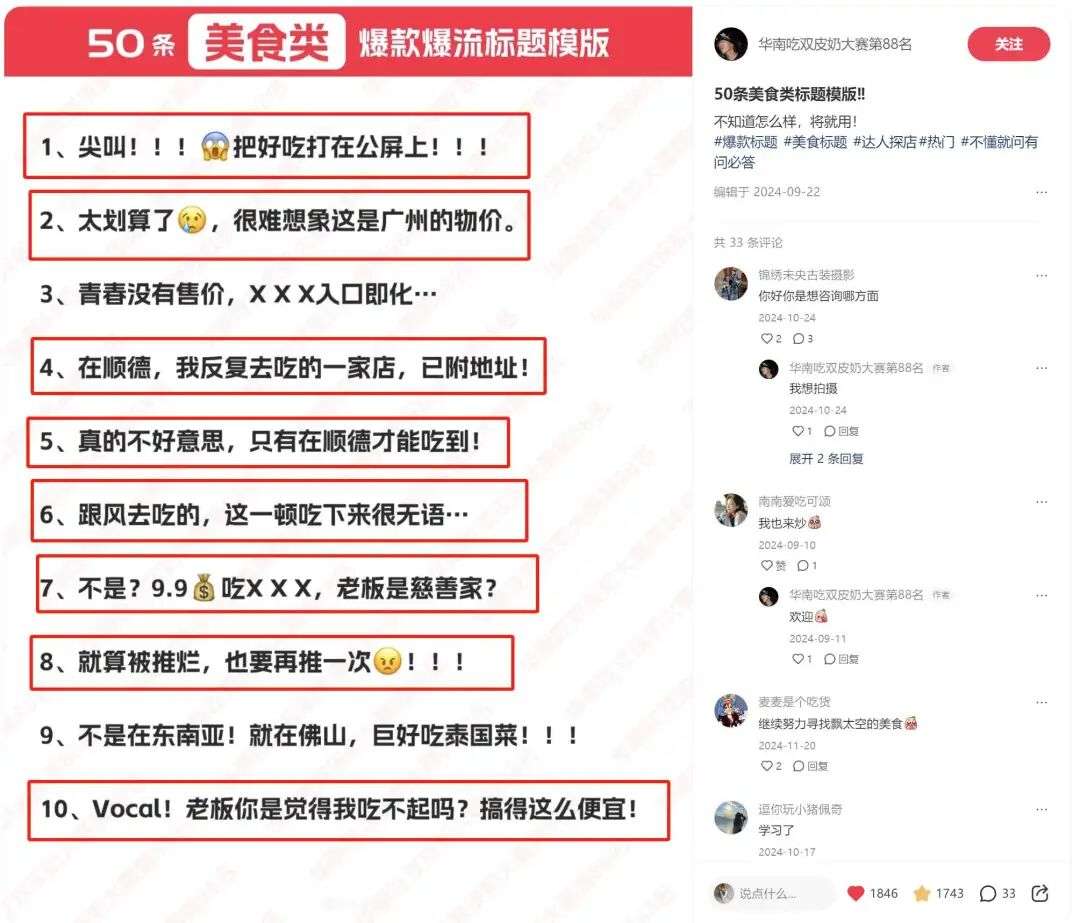 4)去小红书上搜“美食爆款标题”“2024美食爆款标题”“2023美食爆款标题”“2025美食爆款标题”,把里面的标题格式拿过来,套一套,改一改。