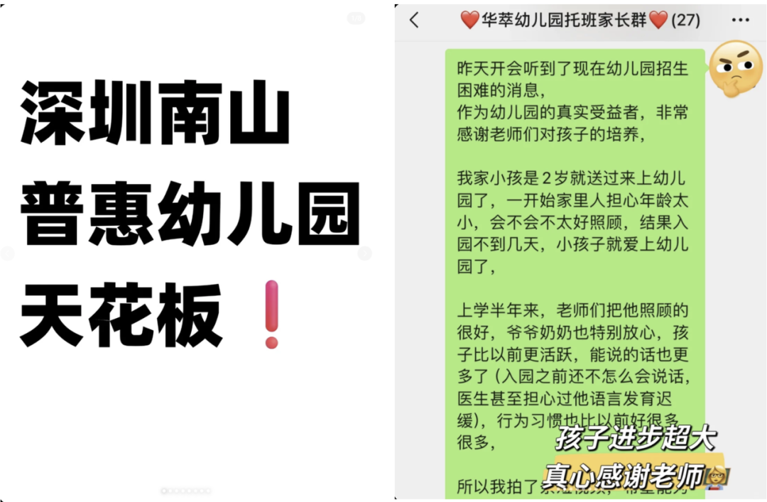 我们来看下“第一次公益小课的时候,珍妮提到的【给深圳幼儿园做招生】的素人文笔记”。