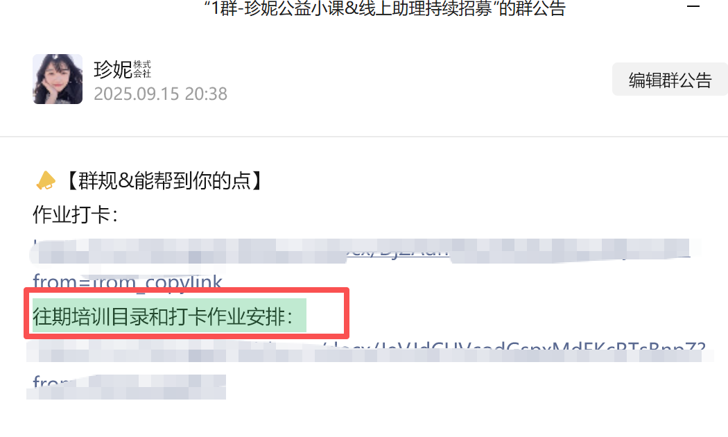 如果进群进的比较晚,不知道我们之前培训了什么,请在群公告里查看相关信息