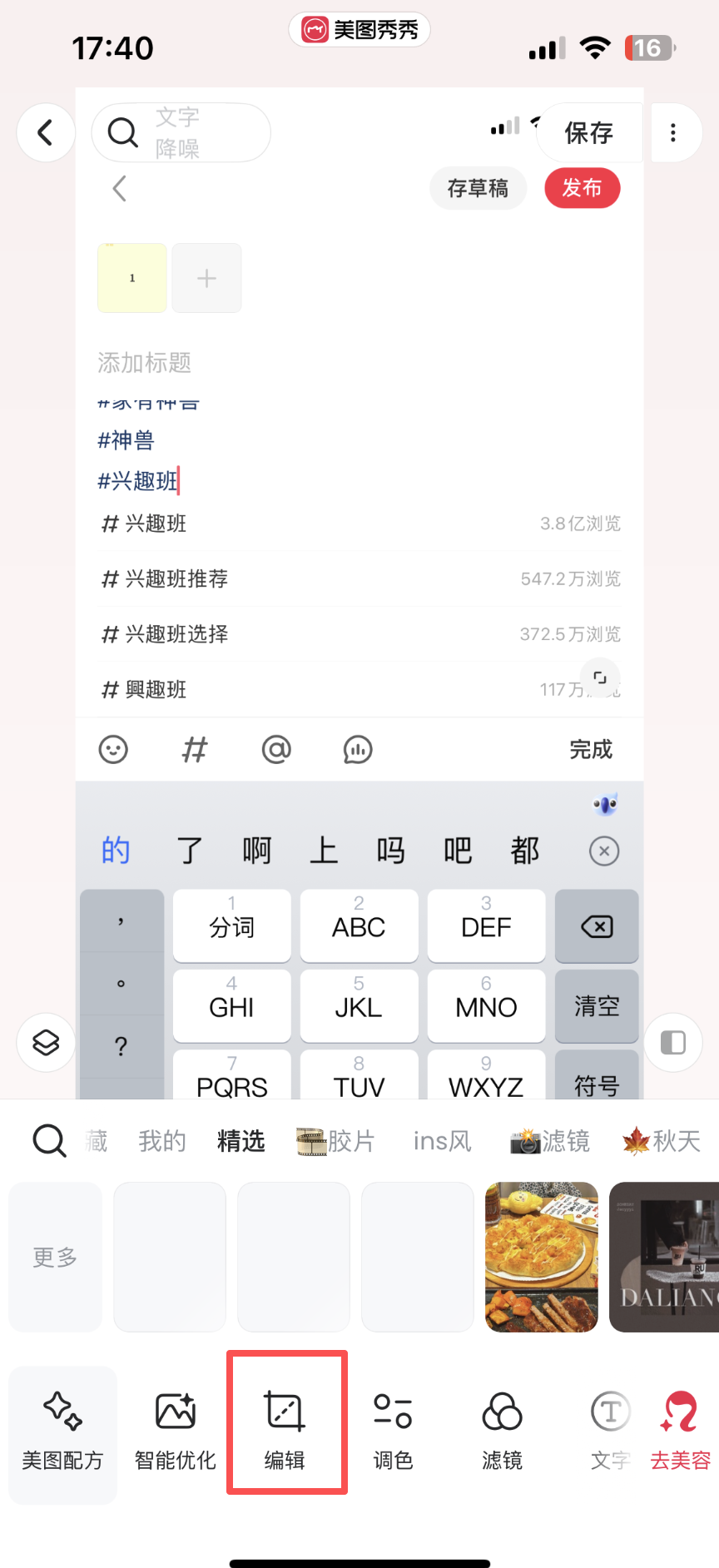 比如这是美图秀秀app,上传完图片后我们找到底部的“编辑”按钮。
